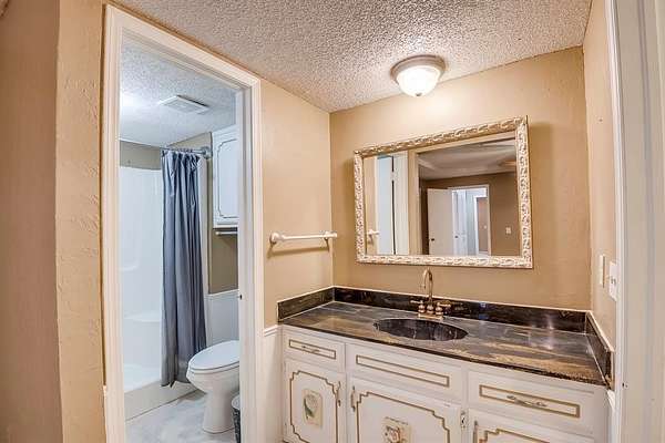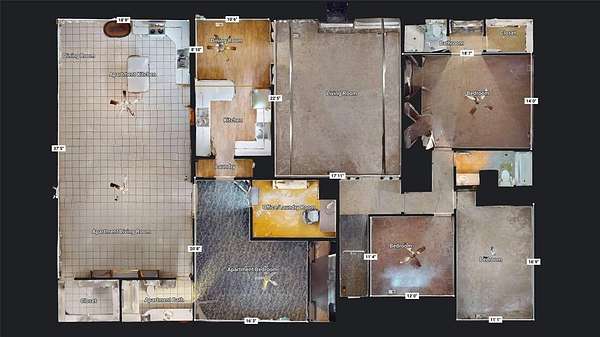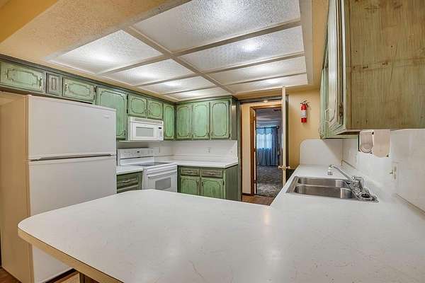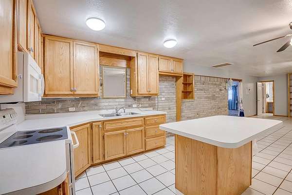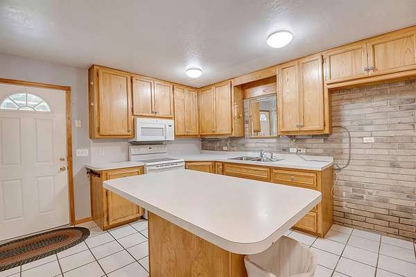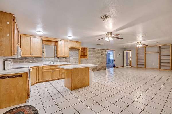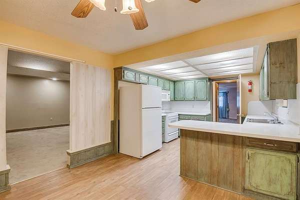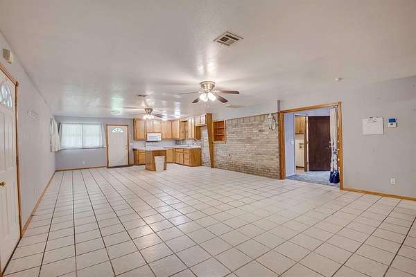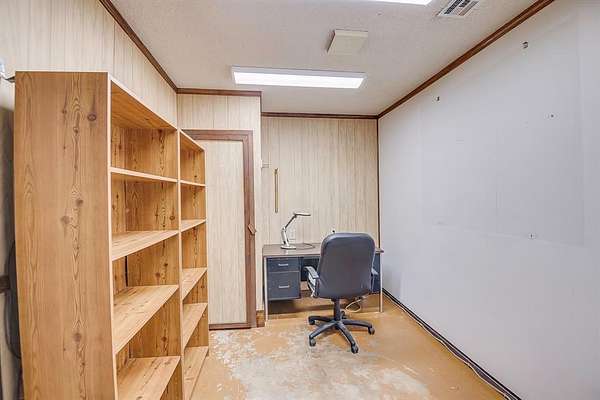 Adjacent to the main house is an attached dwelling unit, ideal for extended family, rental income, or a potential duplex setup. This unit spans 1,428 square feet and includes a generous living room, a functional kitchen with an island and dining area, a full bath, and a large closet. Additionally, it features a sizable office/laundry room, offering ample space for work or storage needs.