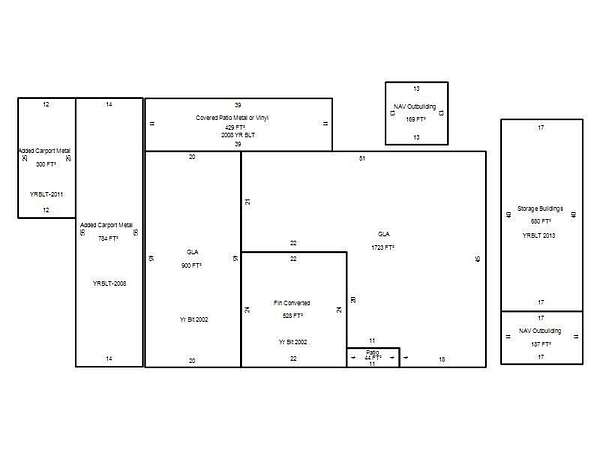 Appraisal measured a total of 3,096 square feet. The property is equipped with modern conveniences, including a new roof and two brand-new HVAC units, ensuring comfort in both living spaces. For vehicle storage, there is a covered carport that can accommodate at least four cars. Additionally, the property includes three large storage buildings and a covered patio, perfect for outdoor entertaining.
