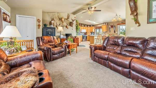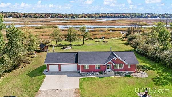 Your Riverfront Retreat Awaits! Experience peace, privacy, and natural beauty with this 3-bedroom, 2-bath home nestled on 8.8 scenic acres along the serene Whitefish River. Designed with an open-concept layout, the living room and eat in kitchen areas offers picturesque river views, perfect for relaxing or entertaining. Step out through the dining area's patio doors to sip your morning coffee while taking in the tranquil sights and sounds of the river. The primary bedroom flows into the en-suite bathroom featuring a large soaking tub--ideal for unwinding after a day outdoors. A 3-car attached garage provides plenty of space for vehicles, tools, or hobbies, while the 24x24 detached garage is perfect for storing your boat, ready for days spent exploring the connected waters of Lake Michigan. Surrounded by nature and abundant wildlife, this property is a true Upper Peninsula sanctuary--offering the views, tranquility, and lifestyle you've been searching for.