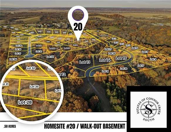 1/2 ACRE WALK OUT "BUILD READY" HOME SITE #20 = Where Luxury Breathes & Dreams Break Ground! A place where the horizon stretches wider, the air feels lighter & the promise of your future home begins long before the foundation is poured. On the edge of Kansas City, a new community "set apart" featuring a rare collection of homesites that have been carved into the rolling landscape just beyond the Legends in Kansas City, KS! A mix of sprawling .5+ acre to 1+ acre estate lots that invite you to design a residence worthy of your dreams. Each homesite offers sweeping views, surrounded by mature trees, open skies, and the quiet rhythm of nature-all set along winding paved streets with curbs, gutters + city sewer! Where countryside serenity meets effortless access in the award-winning Piper School District. A premier location just 20 minutes from KCI International Airport, the historic charm of Weston, the riverfront elegance of Parkville, the vibrant culture of Lawrence & the stability of Fort Leavenworth. You're also around the corner from The Legends premier shopping, elite dining and sporting events and venues. Championship golf courses, natural sanctuary of WYCO Lake w/ chart-topping musical performances at Azura Amphitheater. Finally, convenience is within reach-yet life feels wonderfully private. Existing Amenities help set the tone for elevated living w/o the wait. Those seeking guidance. Our ONSITE preferred custom builder stands READY to collaborate OR help you find the right builder & turn your dreams into reality! This is not simply a place to build a home, it is the beginning of your story! Take a scenic drive & preview this EXCLUSIVE collection of 56 beautiful homesites, each tucked into the reserved hills of this BRAND-NEW community, where your estate begins with a dream & rises into a life lived beautifully in the heart of Kansas City, KS.