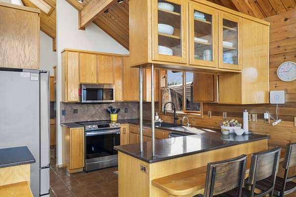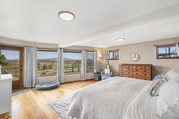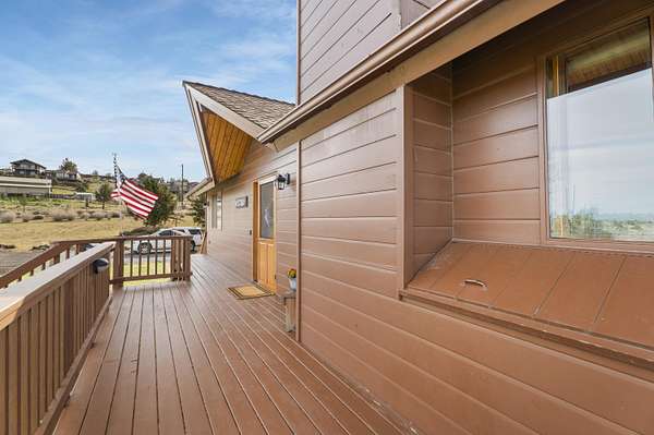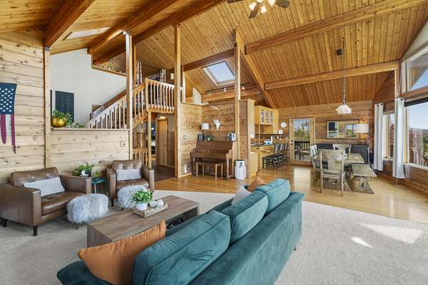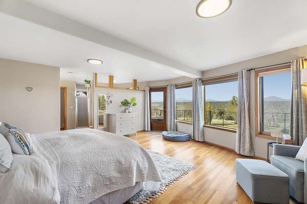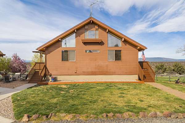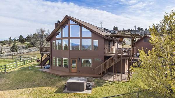 Experience breathtaking panoramic views of the Cascade Mountains from this stunning Lindal cedar home. Soaring cathedral ceilings and a dramatic wall of windows flood the space with natural light while showcasing the scenery. Warm wood floors lead into a well-appointed kitchen complete with Silestone countertops, newer appliances, and a Butler's pantry. The versatile loft offers an ideal space for an office, guest room, or flex area. The spacious primary suite features mountain views, dual sinks, a soaking tub, and a walk-in closet. Enjoy outdoor living on the expansive decks, around the fire pit, or while unwinding in the hot tub. Fully fenced and irrigated, the property includes a garden area and animal stall. Complete with an oversized 3-car garage and a 40x16 enclosed RV carport with full hookups, this property offers both comfort and functionality in an unforgettable setting.