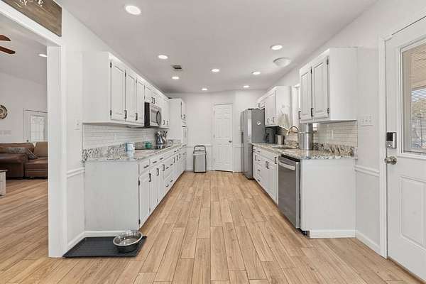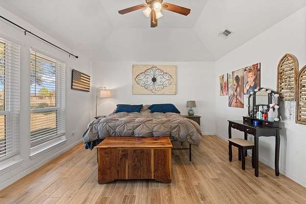 The home's layout provides comfort and flexibility, with three well-sized bedrooms and two full bathrooms. The primary suite serves as a quiet retreat, while the secondary bedrooms and shared bath offer plenty of room for family, guests, or a home office setup.