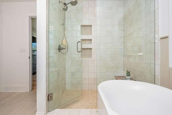 - Bookcases, Disappearing Attic Stairs, Double Vanity, Entrance Foyer, High Ceilings 10 ft Main, High Ceilings 9 ft Upper, Tray Ceiling(s), Walk-In Closet(s)