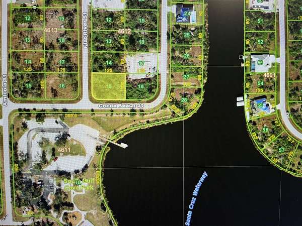 Est $267/moOversites corner lot with 12,361 sq ft, it is across the street from the park and boat ramp. Located in the prestigious waterfront community of South Gulf Cove, with access to the Bay and Ocean. Only minutes to Bo-ca Grande's and Englewood's white beaches, marinas, boat ramp, fishing, golf courses, restaurants, and shopping.