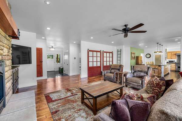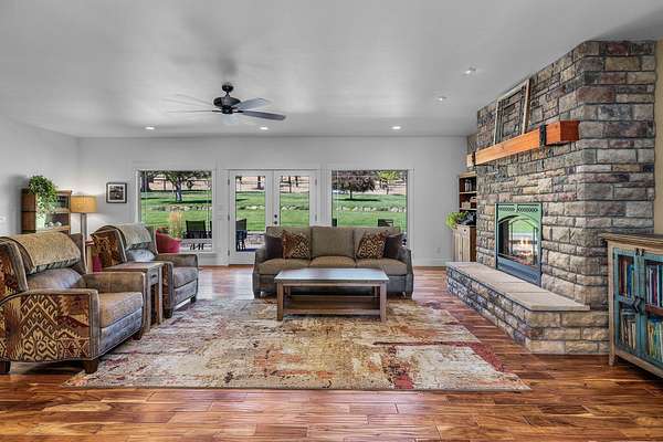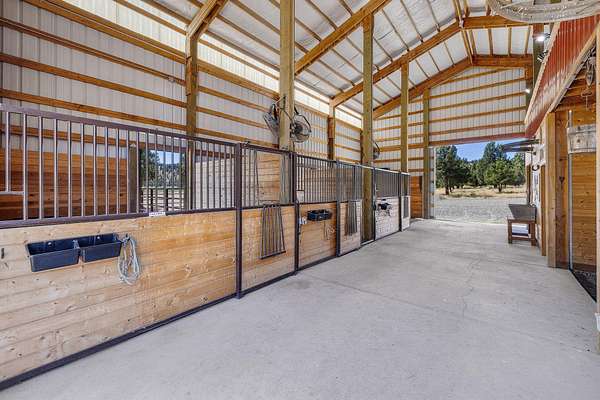 Panoramic views from this meticulously maintained gated 19.65 acre property located on a dead-end road. The paved driveway leads to the single story home that is located in the center of the property for complete privacy. Thoughtfully built home has Acacia hardwood flooring; spacious great room with fireplace that opens to a large island kitchen that has solid Hickory cabinets, Quartz countertops, large walk-in pantry, and stainless steel appliances; and attached oversized finished two car garage. Acreage is partially fenced, and the backyard of the home is completely fenced and landscaped. Several outbuildings include 62'x49' two story barn, 25'x26' equipment building, and 16'x10' shed. The barn is currently being used for horses, but it could be converted into a shop or used for RV/boat parking. Seller will remove the existing stalls and panels in the barn, and the round pen panels if buyer does not want them.