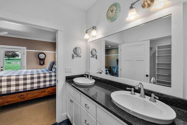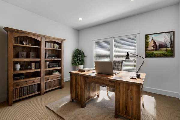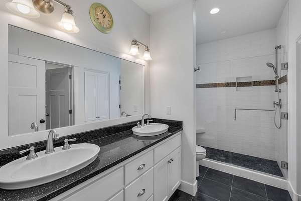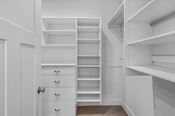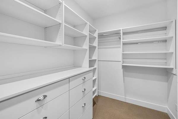 - Ceiling Fan(s), Double Vanity, Kitchen Island, Linen Closet, Open Floorplan, Pantry, Primary Downstairs, Shower/Tub Combo, Smart Thermostat, Solid Surface Counters, Stone Counters, Tile Shower, Walk-In Closet(s), Wired For Data