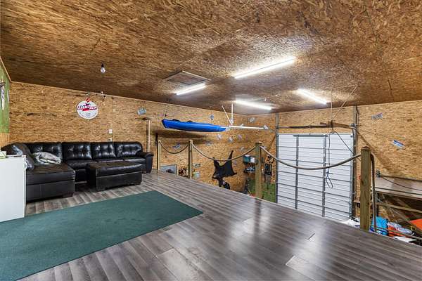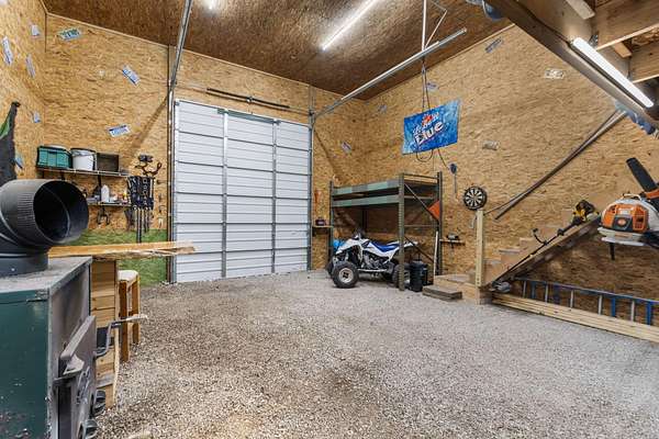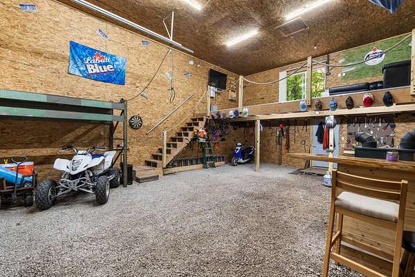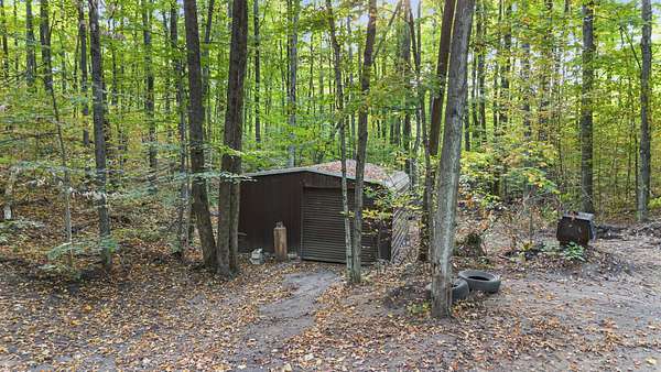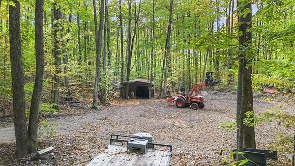 Escape to 10+ acres of the ultimate recreational getaway. The property features 10 private trails perfect for ORVs, dirt bikes, and snowmobiles. Two deer blinds, two tree stands, and rye and clover food plots make this a hunter's dream. The 32 x 24 lofted pole barn is powered by a generator and solar that runs LED lights and outlets, while a rainwater collection system and wood stove add self-sufficiency. Two additional storage structures offer extra space for gear and equipment. A Kubota tractor is included for easy maintenance and trail work. Whether camping, hunting, or riding year round, enjoy total privacy and adventure on your own land.