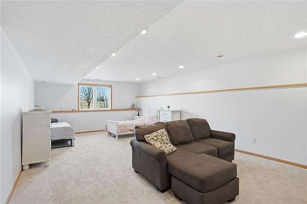 The lower level includes a large non-conforming 5th bedroom (no closet, but with egress window), offering flexible space for a guest room, office, studio, media room, or playroom.