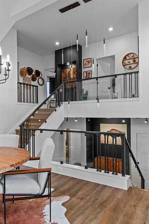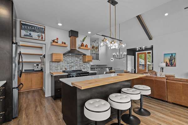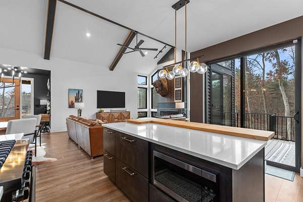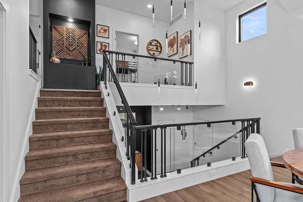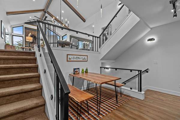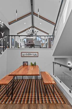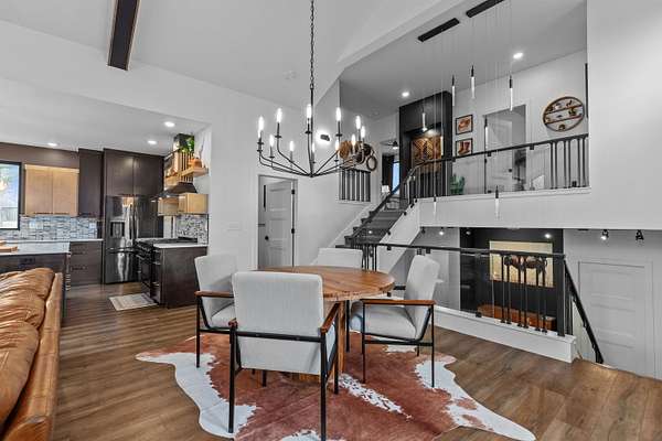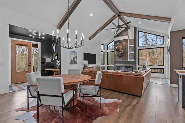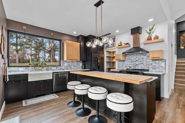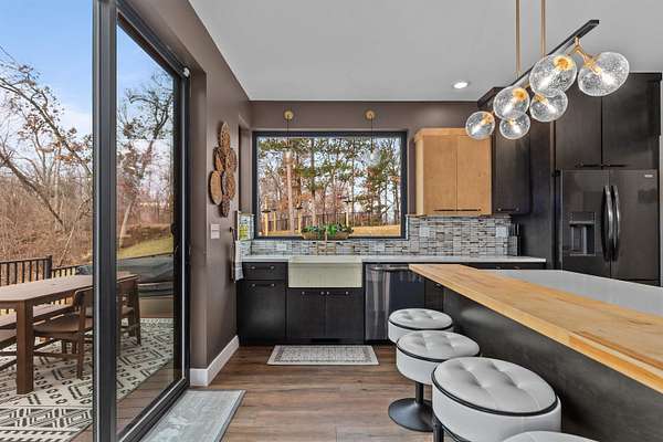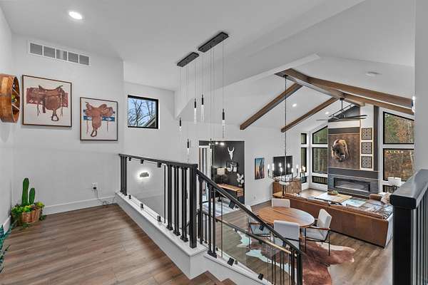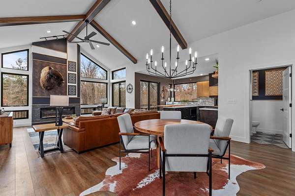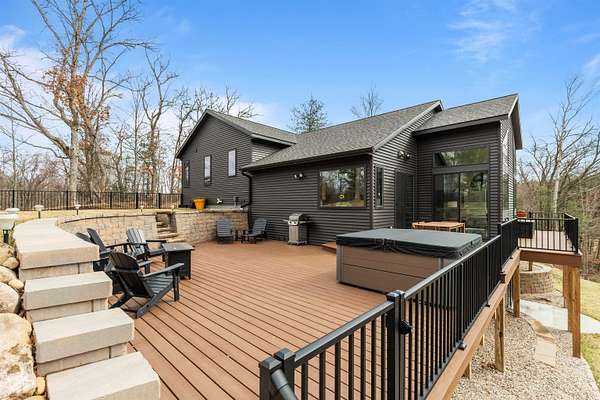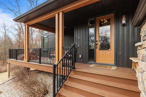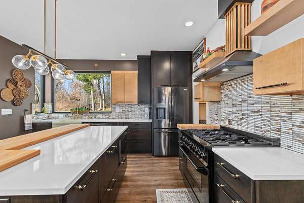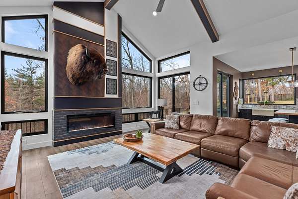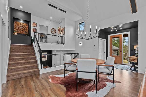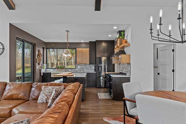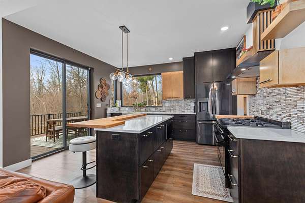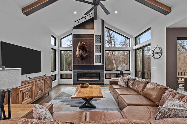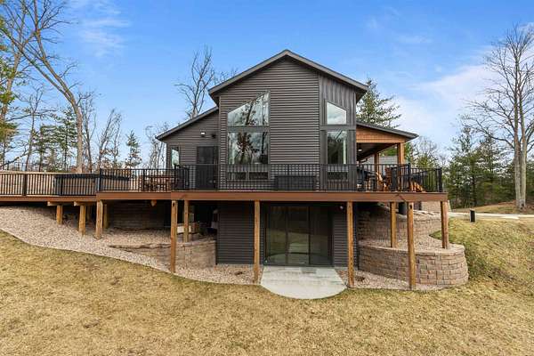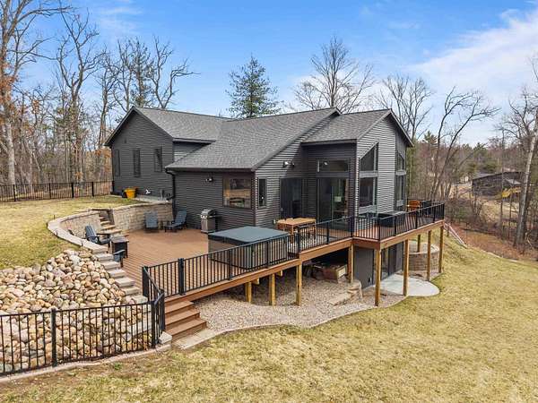 Absolutely stunning contemporary masterpiece in Amherst’s coveted Emerald Hills subdivision, set on a private, peaceful 2-acre lot. Built in 2022 as a renowned Blenker Co. Parade Home, this one-of-a-kind residence is a true work of art- where bold modern architecture meets thoughtful, imaginative design. From the moment you step inside, you’re greeted by soaring vaulted ceilings with striking beam accents, designer lighting, and a breathtaking open-concept layout that instantly feels both grand and inviting. Designed with entertaining in mind, the main level seamlessly blends kitchen, dining, and living spaces while still offering exceptional day-to-day functionality. The chef’s kitchen is nothing short of spectacular, featuring a Z-Line commercial-grade gas range, Gasland Chef hood, black stainless appliances, natural-stained maple cabinetry, quartz countertops, butcher-block accents, and a cast-iron sink. A spacious walk-in butler’s pantry adds both a statement piece and practicality. Oversized windows and patio doors frame serene, panoramic views of your private natural setting. The living room is bathed in natural light thanks to its southern exposure and showcases a stunning tile-surround fireplace along with direct access to the sprawling, multi-tiered Trex deck—perfect for relaxing in the hot tub while overlooking your own nature preserve or hosting friends and family for a BBQ. A custom-crafted steel-and-glass staircase serves as a striking architectural centerpiece, guiding you through the homes living spaces. Off the garage entry, a thoughtfully designed drop zone with walk-in closet, cozy den, and private office create everyday functionality. The lower level offers a versatile family room, half bath, and a beautifully designed private owner’s retreat. The primary en-suite is a true sanctuary—complete with tray ceilings, a modern accent wall, expansive three-panel patio door with a million-dollar view, and attached spa-like bathroom featuring dual vanities with illuminated mirrors, distressed octagonal tile flooring, a tiled walk-in shower with freestanding glass enclosure, and walk-in closet with private laundry hookups. Upstairs, you’ll find two spacious guest bedrooms, each with walk-in closets- connected by a Jack-and-Jill bathroom, along with a charming reading nook and a well-appointed laundry room with abundant cabinetry. Every inch of this home reflects exceptional craftsmanship, high-end finishes, and meticulous attention to detail. Zoned HVAC provides exceptional climate control and efficiency, and high-speed fiber optic internet make working from home a dream. In addition to the attached garage, a newly constructed, insulated and heated 24x30 garage with 8-foot door height, wi-fi, and electrical in place for welding, as well as an 8x12 matching shed, provide exceptional storage space for your toys and tools. Enjoy sweeping views of Amherst’s rolling wooded hills, with convenient access to Cate Park and the Tomorrow River Trail. Located within the highly regarded Tomorrow River School District and just a short drive to Stevens Point. Skip the stress of building and step into turnkey perfection. This is more than a home—it’s a lifestyle. Schedule your private showing today.