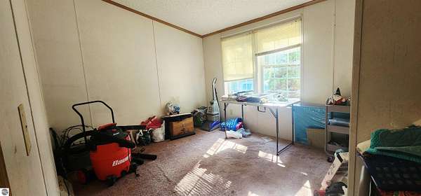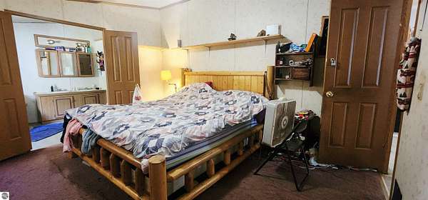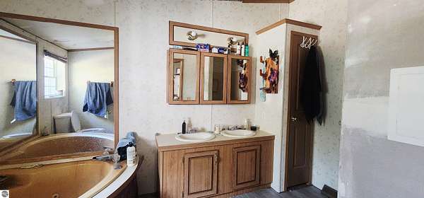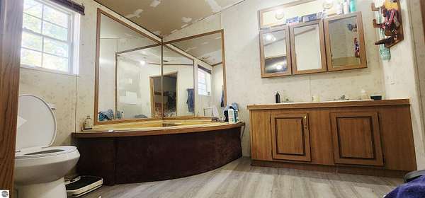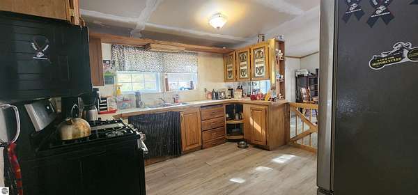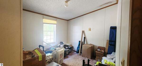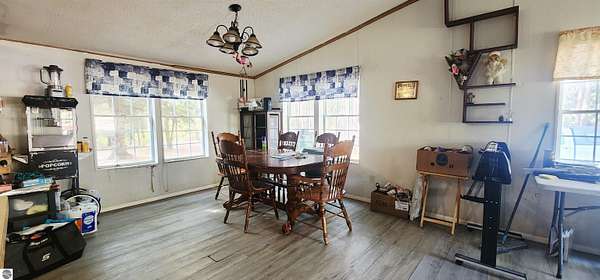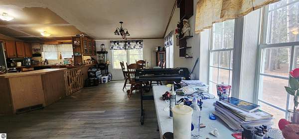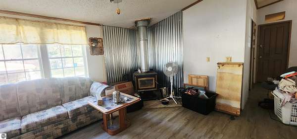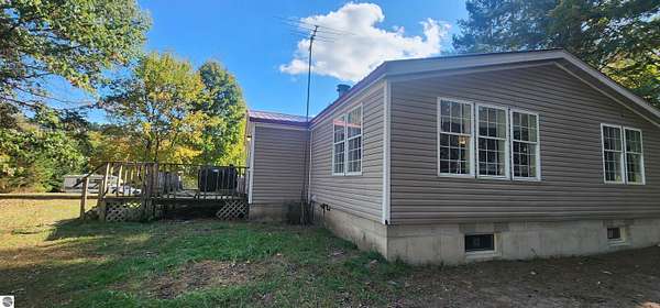 MLS Description: Spacious 6-bedroom home on 5 wooded acres. This 1993 manufactured home is on a poured foundation, and just had a new metal roof installed. The main level features a large living room with vaulted ceilings, a bright kitchen with stainless steel appliances, plenty of counter space, and an open dining area that flows into a cozy family room with a wood stove. The primary suite includes a garden tub, shower, and double sinks. The main bath offers a full tub/shower combination. The lower level includes three large nonconforming bedrooms, each with its own baseboard heat control. Large bath with a full tub/shower combination. The current seller converted to a wood boiler system to save money. There is also a propane furnace and propane hot water heater still intact. Outside you'll find a 40x40 barn with a lean for wood storage, a chicken coop and pen, and an area for gardening. Mature trees and red pines surround the property, offering privacy and a peaceful setting.