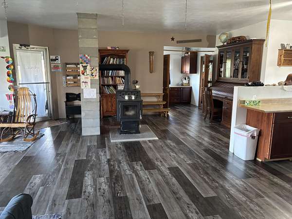Spacious 3 bedroom 1 1/2 bath home, located on 43 fenced in acres! Located on former golf course land there are hand pumps with water located through the grounds. The land is excellent for farming /horses/livestock, most recent crop has been Sorgum Grass. There is an oversized two car attached garage. There is a large 40X100 pole barn with concrete, 4 horse stalls, and a 20x20 maintenance shop or office attached. There is also a 30X60 hoop barn that is very nice with concrete flooring. Home has lots of parking all with asphalt. the home has many amenities including: NEW windows, doors and flooring throughout in 2019. No electric, heated with a wood stove, LP for appliances, has an electric well and the diesel generator handles the pump. Large septic with several drainfields. Home has a very large pantry or canning room. In the back of the home is a large concrete patio, storage area or Greenhouse, and a large garden area. This is truly a magnificent property.