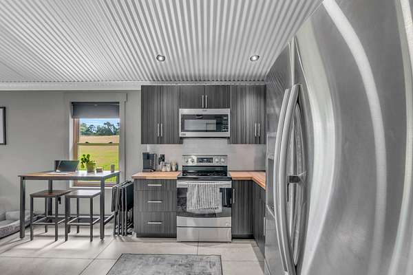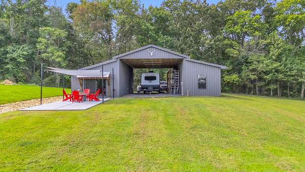 The barn parcel (7.62 acres) was built in 2018 and includes a large RV carport with full hookups, a well-equipped workshop, and ''The Yeti''--a modern, insulated studio apartment with full kitchen, bath, and laundry. A shaded patio and firepit make it the perfect gathering space.