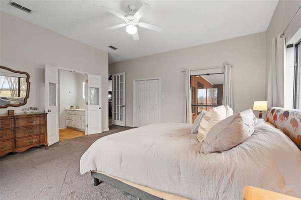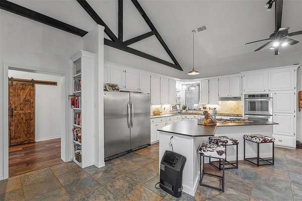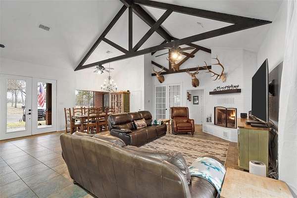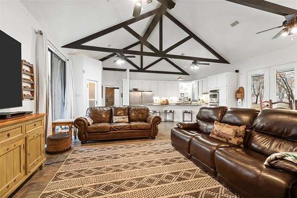 The main residence opens to a spacious, light-filled layout where the living room, dining area, and kitchen flow seamlessly together—perfect for both everyday living and entertaining. The chef’s kitchen is truly the heart of the home, featuring an oversized island, dual gas cooktops, double built-in ovens, and ample space for a double refrigerator, making it as impressive as it is practical. Designed with privacy in mind, the split-bedroom floor plan offers a luxurious retreat in the primary suite. The master bedroom leads into a spa-inspired bathroom complete with a relaxing garden tub, an expansive walk-through shower, and the convenience of a washer and dryer located within the master closet. On the opposite side of the home, a second living area creates the perfect flex space for a game room, media room, or additional lounge. Two generously sized bedrooms are tucked away here, connected by a well-appointed Jack-and-Jill bathroom—ideal for family or guests. Adding even more value and versatility, the guest house is a well-built metal structure featuring a large, fully heated and cooled shop—perfect for hobbies, storage, or a home-based business. An expansive covered porch provides the ideal space to unwind or entertain while enjoying the peaceful surroundings. Two natural springs supply water to both homes, complemented by a reverse osmosis system and an additional rainwater gutter catch system, providing clean, reliable, and sustainable water—a rare feature for properties of this caliber.