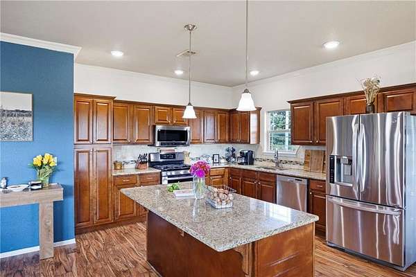 Enjoy lower utility bills with solar panels. A large pond stocked with fish sets the scene for family fishing days and peaceful country living. With approximately 1700 sq. ft. of living space, this property combines comfort, functionality, and the beauty of wide-open land.