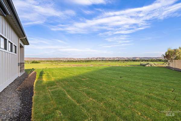 New construction perched on a bluff, surrounded by farmland w/ expansive mountain & valley views. 4-bedroom, 2.5-bath, 2,950 sqft single-level home blends quality craftsmanship w/ modern design. The gourmet kitchen features high-end built-in appliances, quartz countertops, a large center island, modern tile backsplash, walk-in pantry, & custom cabinetry. The split-bedroom floorplan offers privacy & function, w/ a luxurious primary suite including a spa-like bath, walk-in shower, dual vanities, & an oversized walk-in closet. On the opposite side of the home are two bedrooms & a private office that can serve as a fourth bedroom. LVP flooring runs throughout the kitchen, living, office, foyer and primary bedroom. Tons of natural light, this home includes soaring ceilings, a gas fireplace w/ floor-to-ceiling stone, a wall of windows w/ 8-ft doors, built-in shelving, & a extra-large slider leading to a covered patio & private, southeast-facing backyard. PLEASE GO SLOW ON GRAVEL ROAD - 5MPH- SMALL KIDS PLAY IN ROAD
