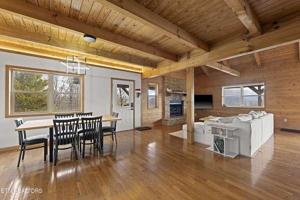 Welcome Home Del Rio, TN! Nestled on a sprawling 12.7 acre wooded retreat in Cocke County, this stunning logcabin home offers 2,164 sq ft of beautifully updated living space with breathtaking, unobstructed mountain views Built in 2004, the residence features 3 bedrooms and 2 full baths, blending rustic charm with modern luxury. Step inside to discover hardwood floors, cathedral ceilings, and a cozy stone fireplace with gas-log and wood-burning options. The home has been meticulously upgraded with high-end appliances, luxury accent lighting, new window treatments, and a 65-inch Sony flat-screen TV-all included in the sale. Practical enhancements abound: new HVAC ductwork and thermostat, radon mitigation system, encapsulated crawlspace with dehumidifier and pump, whole-house water filter, new water heater, well pump extender and tank, Centrix termite prevention, upgraded septic drain pipes, high-speed internet, and a 200amp panel ready for solar or EV charging Outside, enjoy a private, irregularly shaped lot with rolling slopes, wooded terrain, and a serene pond-perfect for nature lovers and outdoor enthusiasts. The property is conveniently located about 17 miles from I40 and just 10 miles from Hot Springs, NC. This turnkey cabin is a rare find-fully furnished, fully upgraded, and ready to impress! Call today to make this house your own!