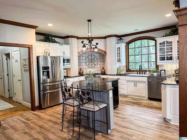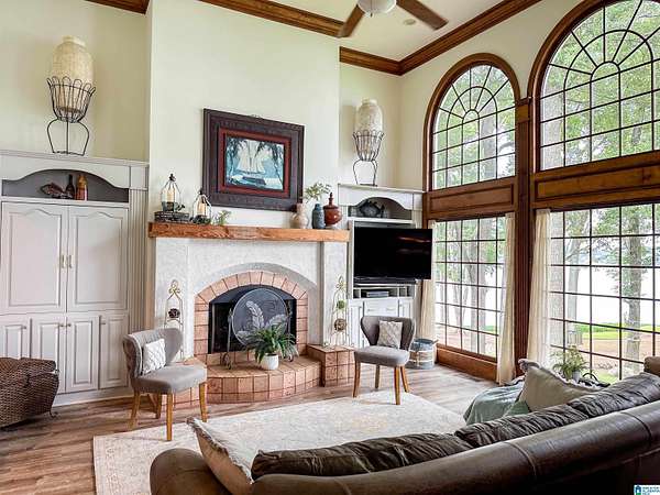 Welcome to your dream lakefront home nestled on 1.65 acres of beautifully landscaped property with stunning views and 240 feet lake frontage. Natural light floods the living spaces ensuring you never miss a breathtaking sunset or moonset. The tongue and groove ceiling on the deck simply enhances the overall aesthetic appeal. The interior features exquisite trim work and archways that seamlessly blend the interior and exterior spaces, creating an inviting flow throughout the home, perfect for entertaining. The basement has been thoughtfully designed with 1260sf partially finished, presenting opportunities for customization to suit your unique needs. NEW concrete tile roof and HVAC unit installed this year as well as other recent updates. Don't miss your chance to own this remarkable home.