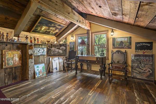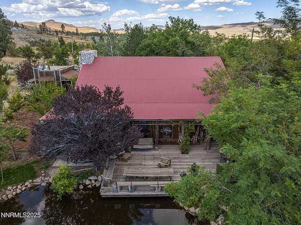 Welcome to Duck Pond Ranch, a truly one-of-a-kind retreat steeped in Nevada history. Thoughtfully crafted over six decades using locally sourced materials, every element of this property tells a story. From hand-selected wooden beams and white rock to vintage fireplace mantles and doors reclaimed from across the state, the home is a living tribute to Nevada's rich past. Step onto the front porch, settle into your favorite chair with a fresh cup of coffee, and cast a line into your own private pond; it's an angler's dream just steps from the front door. On the far side of the pond sits a cozy miner's cabin. Wander through lush grounds shaded by a 100-year-old apple, cherry, and pear orchard, or relax beside the gently flowing Davis Creek, which meanders alongside the charming cabin-style duplex. While listed as a single-family home for broader exposure, the property includes a fully functional duplex currently used for rental income, offering both charm and versatility. Most art, antiques, and furniture convey with the sale, making this property as turnkey as it is timeless. This is more than a home, it's an experience you have to see to believe. The main house is a 3-bedroom 3.5-bathroom at 2400 sqft. A cabin-style duplex, with each unit being 2 bedrooms, 1 bathroom, at 1050 spacious sqft.