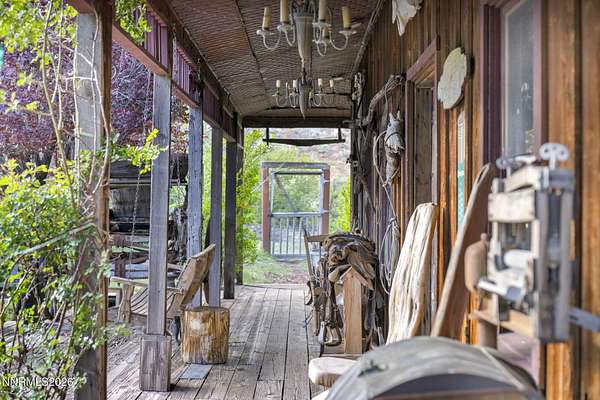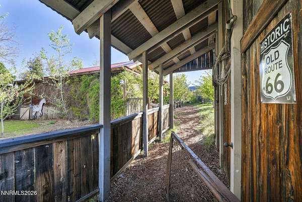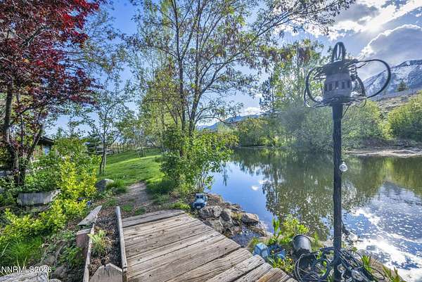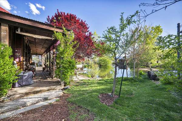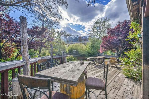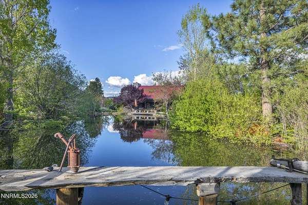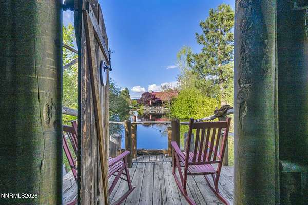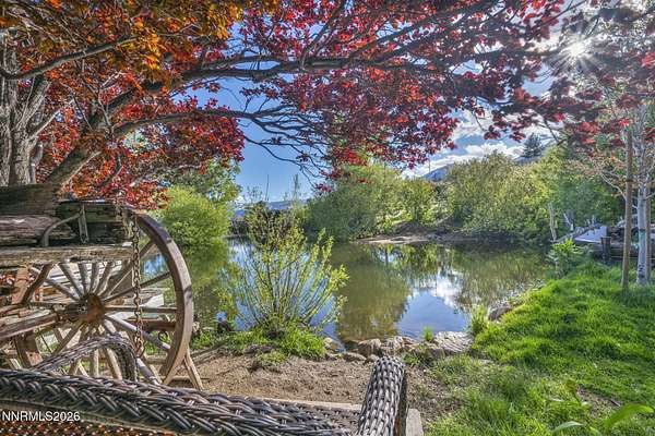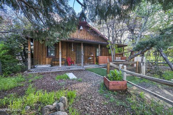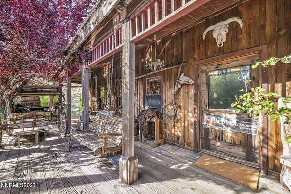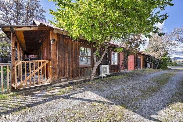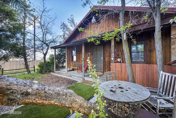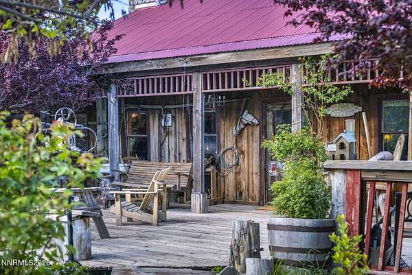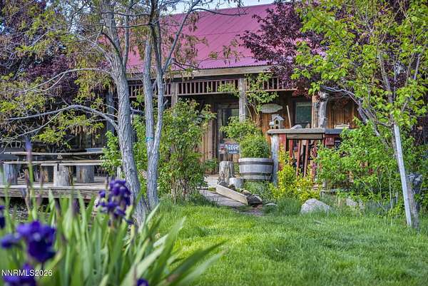 "Home Means Nevada." This property defines what Nevada living is all about. Warm and inviting the moment you walk in, every corner tells a story rooted in the land, history, and craftsmanship of Northern Nevada. Located in Washoe Valley along U.S. Highway 395, the property offers direct access to Reno and Carson City while maintaining privacy, open space, and a true Northern Nevada setting. The main residence is approximately 2,400 sq ft with 3 bedrooms and 3.5 bathrooms. The living area is centered around a 20-foot stone fireplace built from materials connected to the 1983 Slide Mountain event. At its base, hearth stones weighing over 3,000 pounds, historically used for mounting horses, remain in place with original steel rings. Additional details carry throughout the home, from tin accents to a stair rail sourced from a historic Virginia City building. The home is topped with a durable metal roof. The main-level primary suite features high ceilings, a wood-burning fireplace, and direct access to a wraparound porch. Two additional en-suite guest bedrooms each offer full bathrooms, with one on the main level and the second on the upper level with a loft-style layout. The kitchen features granite countertops, a custom copper countertop breakfast bar, copper ceiling accents, and a spacious pantry. The kitchen cabinets are a true conversation piece, adding a unique design that you do not see every day. The layout opens to the main living area for easy flow. The result is a space with a strong Old West character that still feels functional and open. The property also includes two duplex units, each approximately 1,050 sq ft, provide added flexibility and income potential. Both offer 2-bed, 1-bath, full kitchens, stainless steel appliances, in-unit washer and dryer, mini-split systems for AC and heating, and private outdoor areas. One unit features a 1-car garage and backs to a peaceful creek setting. These units offer multiple use options, including rental income, extended family living, guest accommodations, or a combination of all three. The grounds feature a 120+ year-old orchard with apple, cherry, and pear trees, along with owned year-round water rights. A pond stocked with trout is paired with a rustic cabin built from wood tied to Genoa's early history. Reclaimed barnwood from Franktown adds further local character. Davis Creek runs through the property, enhancing the natural setting and year-round appeal. Zoned for horses with space for equestrian use and RV access. Approximately 900 sq ft of additional land has been recently acquired from NDOT and is pending final county record update. Once finalized, this additional space will be added to the total property acreage. Nearby access to hospitals, shopping, and daily services is within 10-15 minutes, with convenient reach to both South Reno and Carson City. Experience what this property truly offers the moment you arrive. From the character inside to the calm you feel outside, this is a place where you can unwind at the end of the day, sit by the pond, and take in the peace that surrounds you. A property built and cared for by its original owners, offering you the opportunity to become part of its story and carry its history forward. A list is available of furnishings and antique items included with the sale. Schedule your private showing and come see it for yourself.