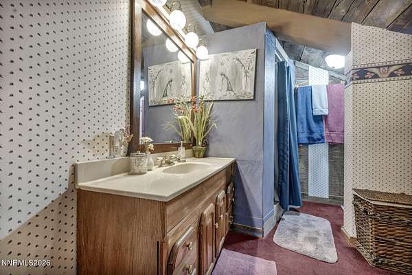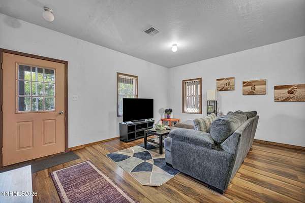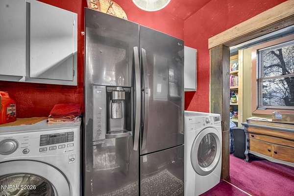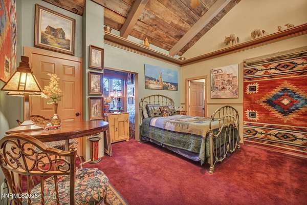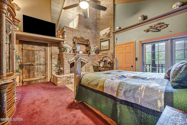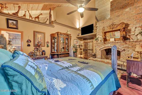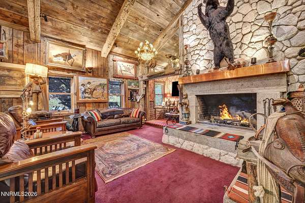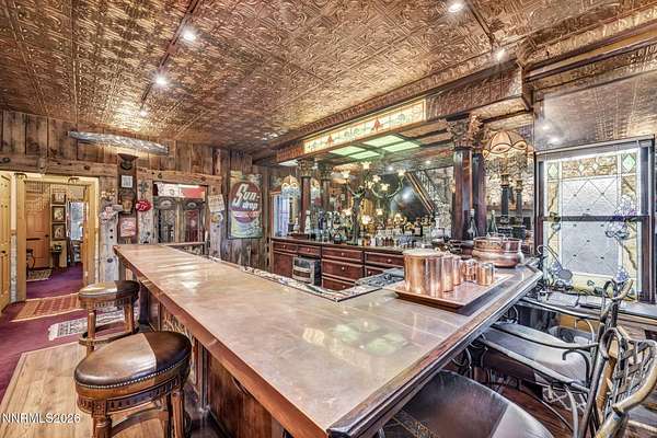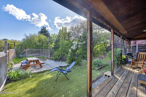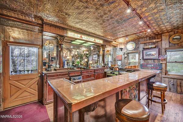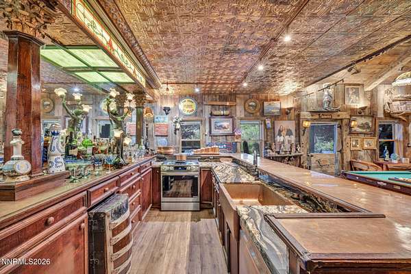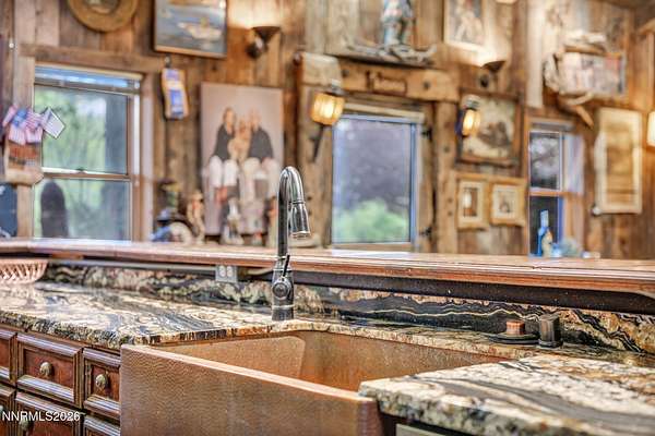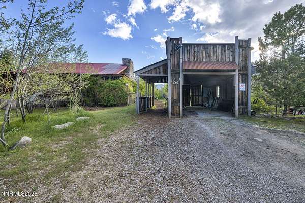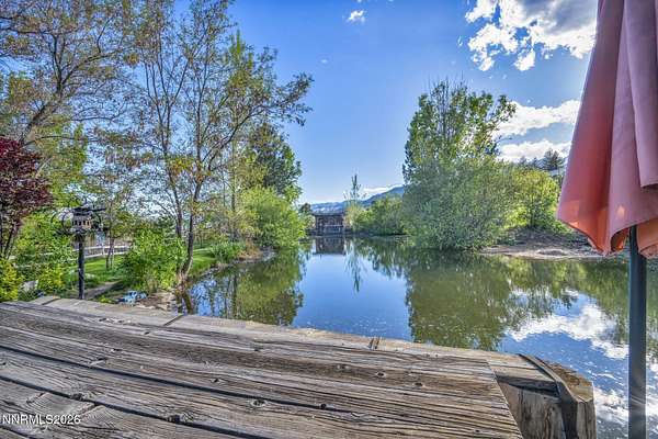 "Home Means Nevada." This property defines what Nevada living is all about. Warm and inviting the moment you walk in, every corner tells a story rooted in the land, history, and craftsmanship of Northern Nevada. Located in Washoe Valley along U.S. Highway 395, the property offers direct access to Reno and Carson City while maintaining privacy, open space, and a true Northern Nevada setting. The main residence is approximately 2,400 sq ft with 3 bedrooms and 3.5 bathrooms. The living area is centered around a 20-foot stone fireplace built from materials connected to the 1983 Slide Mountain event. At its base, hearth stones weighing over 3,000 pounds, historically used for mounting horses, remain in place with original steel rings. Additional details carry throughout the home, from tin accents to a stair rail sourced from a historic Virginia City building. The home is topped with a durable metal roof. The main-level primary suite features high ceilings, a wood-burning fireplace, and direct access to a wraparound porch. Two additional en-suite guest bedrooms each offer full bathrooms, with one on the main level and the second on the upper level with a loft-style layout. The kitchen features granite countertops, a custom copper countertop breakfast bar, copper ceiling accents, and a spacious pantry. The kitchen cabinets are a true conversation piece, adding a unique design that you do not see every day. The layout opens to the main living area for easy flow. The result is a space with a strong Old West character that still feels functional and open. The property also includes two duplex units, each approximately 1,050 sq ft, provide added flexibility and income potential. Both offer 2-bed, 1-bath, full kitchens, stainless steel appliances, in-unit washer and dryer, mini-split systems for AC and heating, and private outdoor areas. One unit features a 1-car garage and backs to a peaceful creek setting. These units offer multiple use options, including rental income, extended family living, guest accommodations, or a combination of all three. The grounds feature a 120+ year-old orchard with apple, cherry, and pear trees, along with owned year-round water rights. A pond stocked with trout is paired with a rustic cabin built from wood tied to Genoa's early history. Reclaimed barnwood from Franktown adds further local character. Davis Creek runs through the property, enhancing the natural setting and year-round appeal. Zoned for horses with space for equestrian use and RV access. Approximately 900 sq ft of additional land has been recently acquired from NDOT and is pending final county record update. Once finalized, this additional space will be added to the total property acreage. Nearby access to hospitals, shopping, and daily services is within 10-15 minutes, with convenient reach to both South Reno and Carson City. Experience what this property truly offers the moment you arrive. From the character inside to the calm you feel outside, this is a place where you can unwind at the end of the day, sit by the pond, and take in the peace that surrounds you. A property built and cared for by its original owners, offering you the opportunity to become part of its story and carry its history forward. A list is available of furnishings and antique items included with the sale. Schedule your private showing and come see it for yourself.
