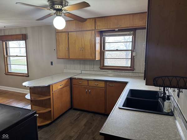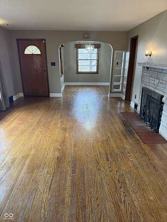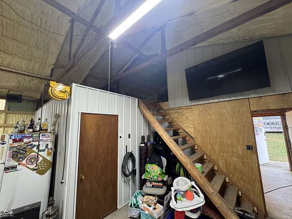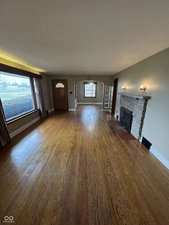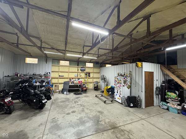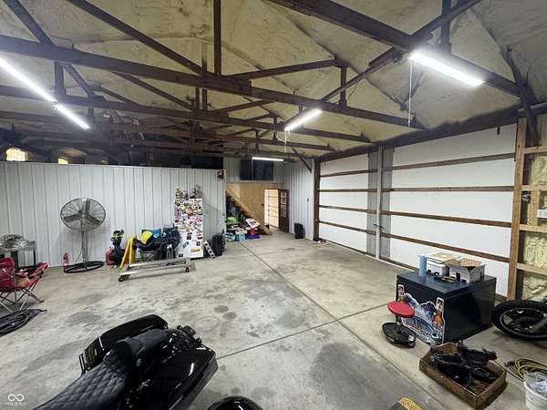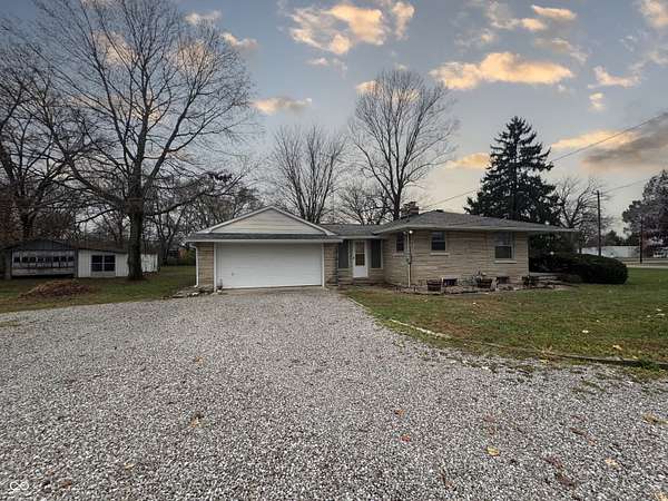 Charming Bedford stone ranch on over 2 acres-right across from Southside Elementary School and the fairgrounds! This warm and inviting 3-bedroom, 1-bath home features hardwood floors throughout, a bright main level, and a full unfinished basement perfect for storage, hobbies, or future finishing. Enjoy the convenience of an attached 2-car garage, plus a massive 30x48 heated and insulated pole barn with concrete floors and 240-volt power-ideal for welding, woodworking, auto work, or year-round projects. The large property provides space, privacy, and room to grow, all while being close to schools, parks, and local events. Homes with this combination of charm, land, and functional workspace are rare-don't miss it!