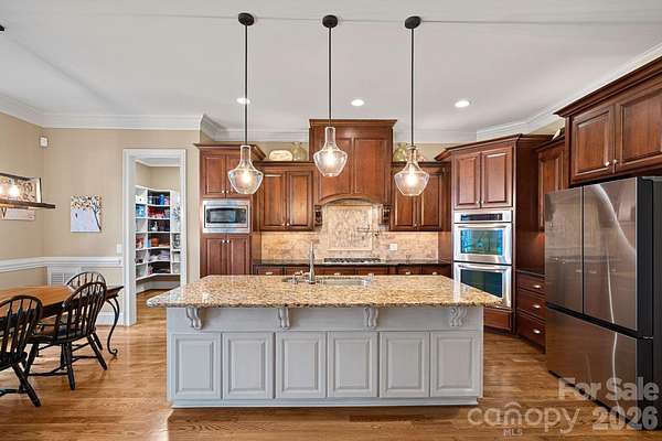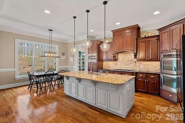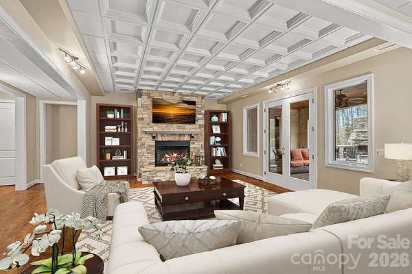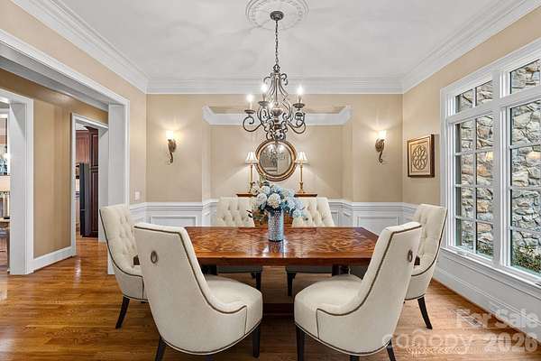 Set behind the gates of The Enclave, one of Concord's most exclusive communities, this stunning custom stone and stucco residence rests on over two private acres framed by mature, scenic trees. Thoughtfully designed with soaring ceilings, exquisite moldings, and sun-drenched living spaces, the home combines timeless elegance with modern comfort. A finished basement creates an inviting space for entertaining, while the rear terrace with stone fireplace provides a serene retreat overlooking the wooded surroundings. The three-car garage and ample room for a future pool complete this remarkable property, all just 8 miles from charming Davidson and 10 miles from Birkdale Village-perfectly balancing private estate living with convenient access to premier shopping, dining, and recreation.