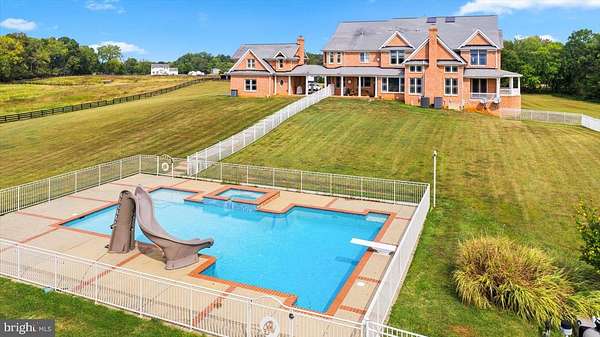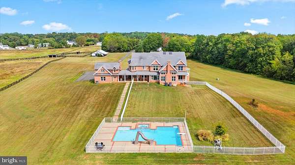 A truly remarkable opportunity awaits with this extraordinary all-brick estate, offering more than 11,800 square feet of luxurious living space on 97 breathtaking acres. Perfectly situated just 2 miles from Route 17 and 5 miles from Route 29, this one-of-a-kind property combines unmatched privacy with convenience, creating the ultimate retreat for equestrian enthusiasts, hobby farmers, or anyone seeking a grand legacy estate. From the moment you arrive, the stately brick residence commands attention with timeless craftsmanship and interiors designed for elegance and comfort. At the heart of the home, a dramatic two-story circular staircase spirals gracefully through the main and upper levels, serving as both a showpiece and a functional centerpiece. Soaring ceilings, expansive living areas, and rich Brazilian cherry floors across the upper levels set the tone for both grand entertaining and everyday living. Dual front and rear staircases add ease and flow, while two sets of Jack-and-Jill baths with private sinks and separate bathing/toilet areas highlight thoughtful family-friendly design. The gourmet kitchen is a chef's dream, showcasing a Wolf 5-burner gas cooktop, Thermador refrigerator, abundant custom cabinetry, and a spacious walk-in pantry. Perfect for both casual meals and elegant gatherings, the kitchen seamlessly connects to the home's dining and living areas. The primary suite is nothing short of a private retreat. This expansive space offers room for a sitting area, multiple walk-in closets, and a spa-inspired bath with soaking tub, separate shower, and dual vanities. Every detail is designed for relaxation and indulgence, creating a sanctuary within the estate. Luxury amenities abound throughout the home, including a private sauna, a full gym, and a secure walk-in vault. Car collectors will appreciate the attached four-car garage, while "porches galore" wrap the home and offer endless spots to relax and soak in sweeping views. Outdoors, a sparkling pool with lounge area creates a private resort-like retreat, and an additional dwelling unit (ADU) provides inviting accommodations for guests. For the equestrian lifestyle, a 6-stall barn with tack room and wash area pairs with a professionally designed riding ring, while the property's 97 acres of rolling pastures and wooded trails invite riding, recreation, and exploration. The massive four-bay equipment garage is a showstopper in its own right, designed to accommodate farm machinery, recreational vehicles, and even a 40-foot RV or bus-with generous space remaining for workshop or storage needs. This is more than a home-it's a lifestyle. Whether your vision is a private retreat, a working farm, or a multi-generational compound, this extraordinary estate delivers the scale, amenities, and natural beauty to make your dreams a reality.