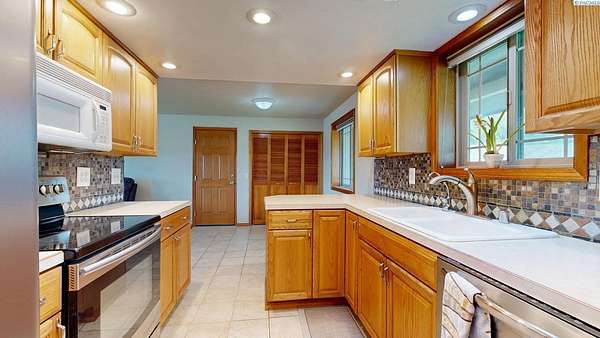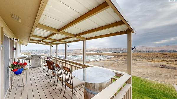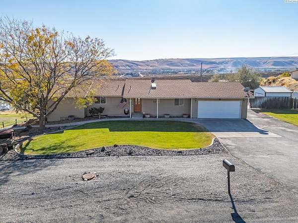 MLS# 279944 This 1.63-acre slice of SW Kennewick gives you all the space you need to breathe, play, and maybe even pick up a new hobby or two. Got horses? You're covered--this fully irrigated lot has direct access to the Reata Riding Trails. Got toys? Park your RV, your trailers, your trucks, your tractor--there's room for it all, plus an attached two-car garage and a separate two-bay shop. Inside this 4 BR 3 BA rambler with basement, sunlight pours into the open concept living space, providing the perfect setting to get cozy or entertain. The living area opens to a gorgeous deck overlooking the views--a spot to enjoy your morning coffee, host dinners, or just relax. The kitchen keeps it practical (everything's right where you need it), and the oversized primary suite is ready for bubble baths and Sunday sleep-ins, complete with an oversize walk-in closet. Downstairs, the large rec room is made for movie marathons, game nights, or letting your inner DIY-er run wild. Step outside and you've got a covered patio that's basically begging for summer BBQs and late-night laughs. If you want a place where you can just spread out and chill with a view, this property gives you space to dream big--and live easy.