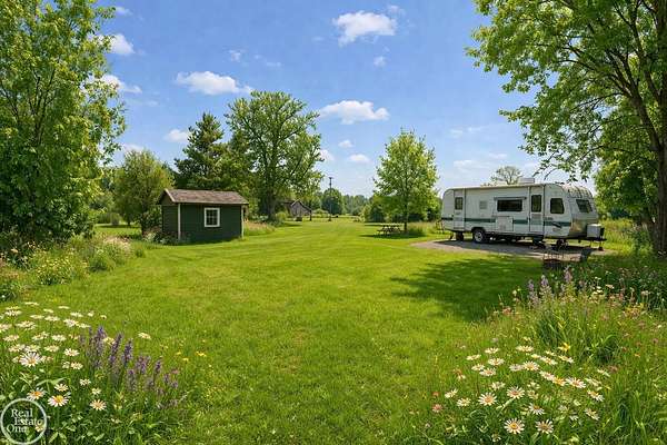 Est $678/moPrime residential building lot at 10151 Canada Road, Birch Run — utilities at the street (water & natural gas) ready for your plans. This vacant parcel includes an RV, durable shed, and all landscaping equipment — move-in ready for your contractor or DIY project. Quiet neighborhood, convenient location; perfect spot to build your dream home. Don’t miss this turnkey opportunity. please note Some photos are AI-staged to showcase the beauty and potential of the land during the summer months!!