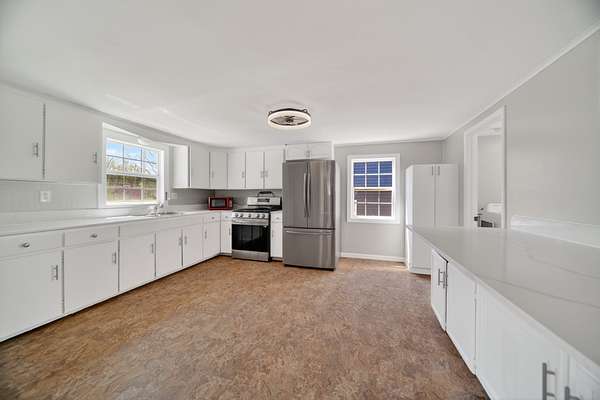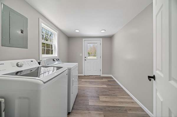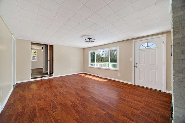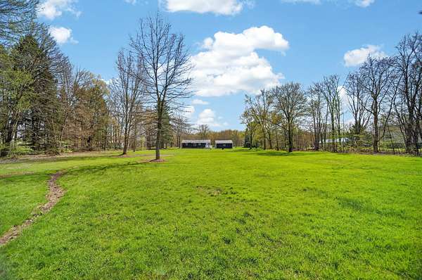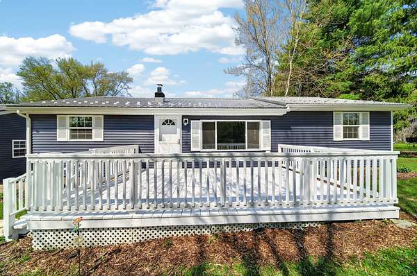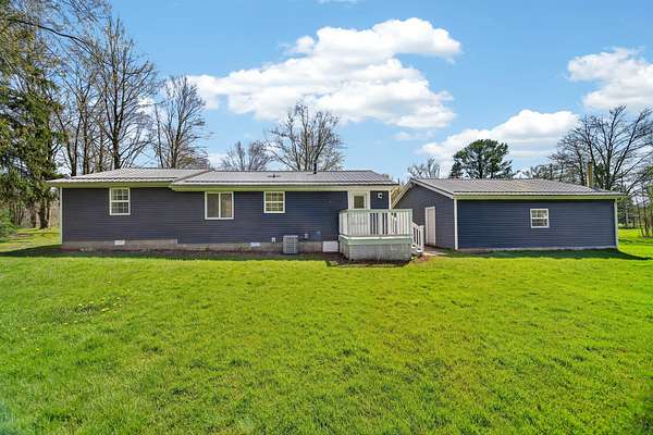 Enjoy peaceful country living on 5 beautiful acres, including over 3 acres that are woods. This well-maintained, one-story home features 3 bedrooms and 2 full baths, a large mudroom with a newer washer and dryer (included), and an oversized garage with a metal roof for extra storage or workspace. The home has a brand-new metal roof on the house and newly installed central air for comfort and efficiency. Inside, you'll find an updated kitchen with added cabinets, new hardware, a quartz countertop, and fresh paint. The spacious primary bedroom includes a walk-in closet, a large bathroom with a brand-new double sink, modern fixtures, extra storage, updated lighting, and LVP flooring. A perfect blend of comfort, updates, and surroundings. Estimated: new windows and siding installed less than 6 years ago, 75% of the house plumbing redone.