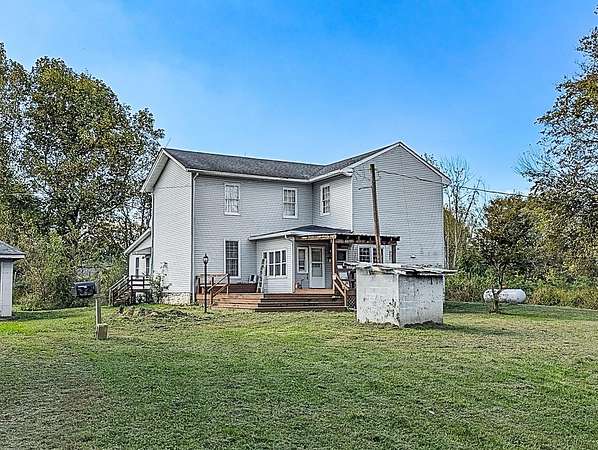 Rare opportunity to own this 1869 home on a 5-acre lot located in the heart of French. The main level has 10' ceilings, 2 bedrooms, 2 full baths, and laundry. This is secluded home has 3,000+ sq ft of potential with transom windows, original trim and so much more. The upper level provides 9' ceilings in 4 additional rooms. The barns give the option for a mini farm, the 3 car detached garage providing plenty of outside storage. Just outside of Aurora, this property is 8.9 miles to the I-275 ramp in Greendale. Cash/ Conventional Only. Sold AS-IS in an Estate.