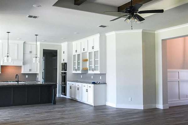 Pristine 4 BR, 2.5 BA on 2.15 treed acres. No HOA, no city taxes! Move-in ready with high-end finishes: tile floors, granite, and kitchen cabinets to the ceiling. Chef’s kitchen features matching KitchenAid appliances, including double ovens and walk-in pantry. Large master with massive his and hers walk-in closet. Modern tech-ready with ATT Fiber and Ethernet in all rooms. A massive 40x35 insulated 3-bay shop with a 12’ overhang and extra-wide driveway. 3-car garage, large patio, and all appliances (KitchenAid + GE Front Loading Washer Dryer with Pedestals). Located in a quiet, scenic subdivision with a private well.