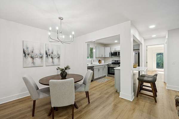 Step inside and you're greeted by new flooring and a gorgeous stone fireplace that practically begs for cozy nights, football Saturdays, and maybe a cup of coffee that you actually get to finish while it's still hot.