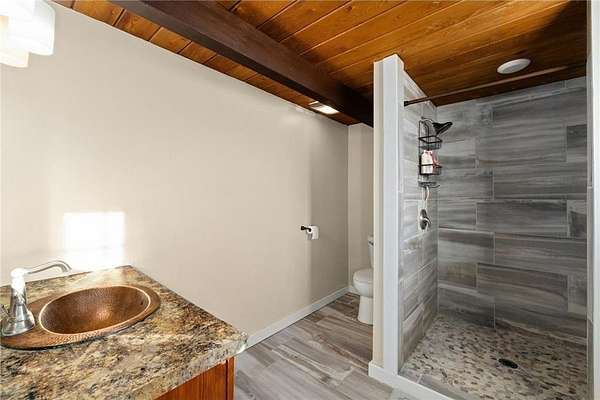 Check out this charming 4 bedroom, 3 bath home set on 1.76 acres. All new updates in 2017. Property features include double attached garage, wrap around deck, and large yard for outdoor fun. Inside the home you'll find exposed beams, electric fireplace, stainless steel appliances, main floor primary bedroom, main floor laundry, and lots of windows giving plenty of natural light throughout. Don't miss this property that is move-in ready, minutes north of Bemidji and full of character!