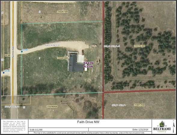 North on 71 in Bemidji, to County 15/Irvine exit. Take a left on Irvine Ave NW and follow to a left on Whiting Rd NW. Left on Faith Drive NW, property at the end of road on left.
