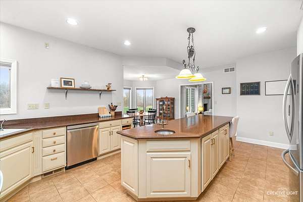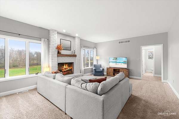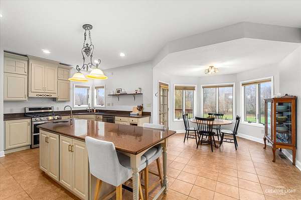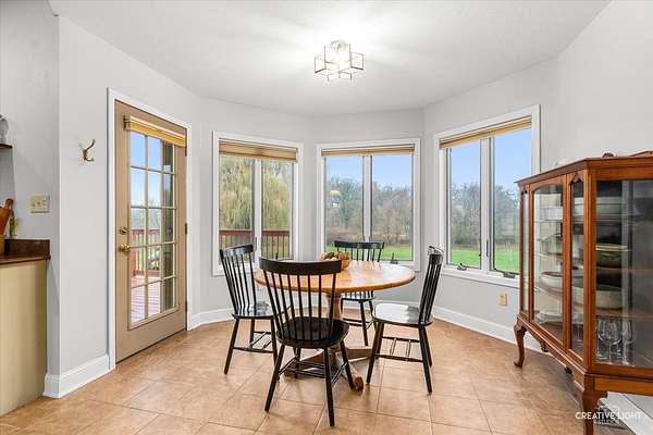 A MUST SEE-THIS FAMILY TRULY LOVES THIS HOME AND MOTIVATED TO CONSIDER YOUR OFFER***There's no place like home for the holidays...and this Country Estate Shining Star in Deer Creek Estates is one you'll instantly want to call home! This custom-crafted gem offers over 4,100 sq ft of beautifully designed living space and sits on 2.17 private acres at the end of a quiet road, complete with a circular drive that welcomes you right to the front door. Step inside to a grand two-story foyer featuring an impressive open split staircase, a light-filled floor plan, hardwood and ceramic flooring, and a fresh, neutral palette throughout. The front den invites you to settle in with its wall of built-in bookcases-perfect for every book your family owns and ideal for a quiet retreat or a productive work-from-home space with peaceful country views. The formal living and dining rooms are ready to host your most memorable celebrations. Turn the corner and discover your dream kitchen, truly the heart of the home, where countless memories will begin to stir. The expansive island-with a second prep sink-allows multiple cooks to join in. You'll love the abundant cabinetry, pantry, granite countertops, and brand-new stainless steel appliances. The charming breakfast area is the perfect spot to start your day while soaking in serene country scenery. Adjacent to the kitchen, the inviting family room features a warm gas fireplace, ideal for cozy winter movie nights or family time gatherings. A private main-level bedroom with a full bath and its own garage accessible entrance makes an ideal in-law arrangement or guest suite. A spacious laundry room, powder room, and access to the extra deep heated 3-car garage complete the main level. Upstairs, the dramatic staircase leads to a luxurious primary retreat fit for royalty, featuring dual walk-in closets, a window wrapped sitting room, and a spa inspired bath made for unwinding. A long hallway provides privacy for the additional bedrooms: two joined by a full bath, and a fourth "princess suite" with dual closets and a private ensuite-also perfect for guests. There's even more to love downstairs: a finished walk-out basement adding 1,000+ sq ft of living space for gaming, movies, playtime, hobbies, or fitness-with generous storage as well. Step outside to the expansive 300 sqft deck and soak in the peaceful country setting ideal for al-fresco dining or enjoying the midnight stars. The outdoor living spaces continue with a paver patio, screened porch, and a large shed with an attached Hen House-complete with chickens so you'll never run out of fresh eggs! Wander your private walking path outlining the entire acreage, which borders a tranquil stream-perfect for peaceful strolls or walking the dog. You're also just steps from Skare Park's trails, playground, driving range, and more. This home has been lovingly maintained and thoughtfully improved. Recent updates include: freshly painted exterior, main level, trim, basement, and primary bedroom; refinished deck; refinished kitchen cabinets; new hardware throughout kitchen and baths; new kitchen appliances; new water softener; and high-end iron filter. New Roof in 2016. Simply move right in and welcome yourself home to your very own Country Estate.