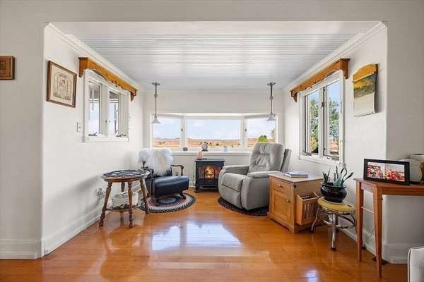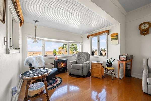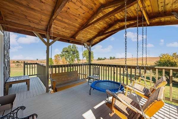 Nestled near the highly sought-after Sand Creek Recreation area just west of Spearfish, this 8.59-acre property offers sweeping views in every direction. Relax on the covered decks while taking in the abundant wildlife, along with breathtaking sunrises and sunsets. The home itself has been thoughtfully remodeled, blending modern comforts with the timeless charm of a country farmhouse. Inside, you'll find 3 bedrooms, 3 bathrooms, an indoor sauna, and radiant in-floor heating for year-round comfort. Outbuildings on the property provide endless possibilities--whether you envision additional living space, a guest retreat, or income-producing opportunities for the future. The large Quonset building could be converted into a barn or leave it as additional garage space. This well-established property is beautifully landscaped and features mature fruit trees and spacious decks, perfect for outdoor enjoyment. The home is supported by an artesian well with a shared well agreement--at no monthly cost to the new owner.