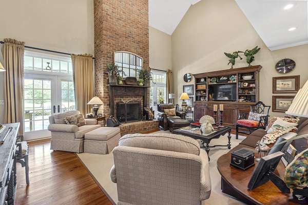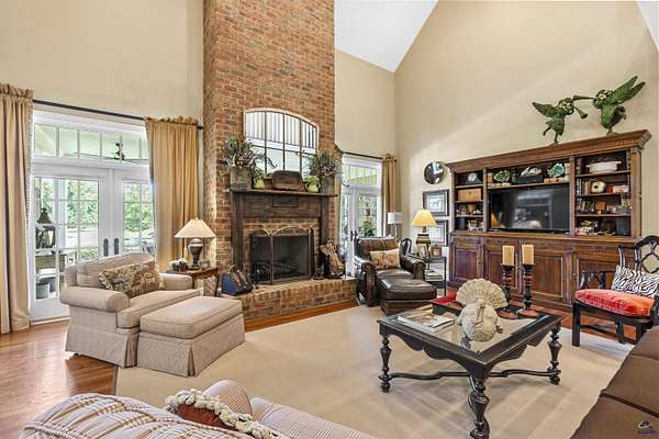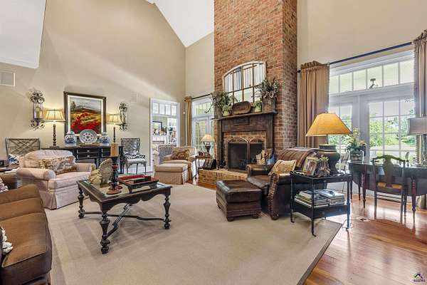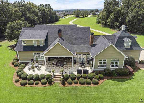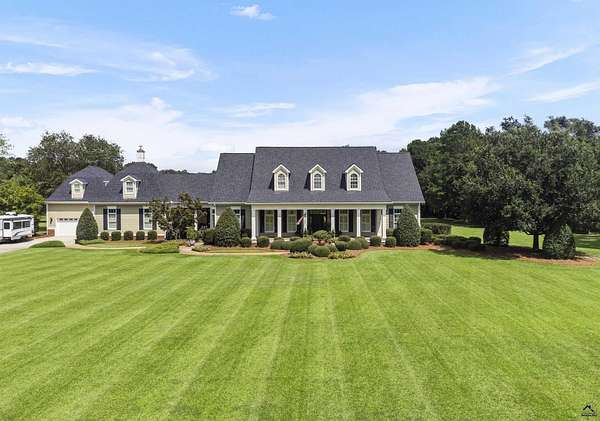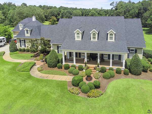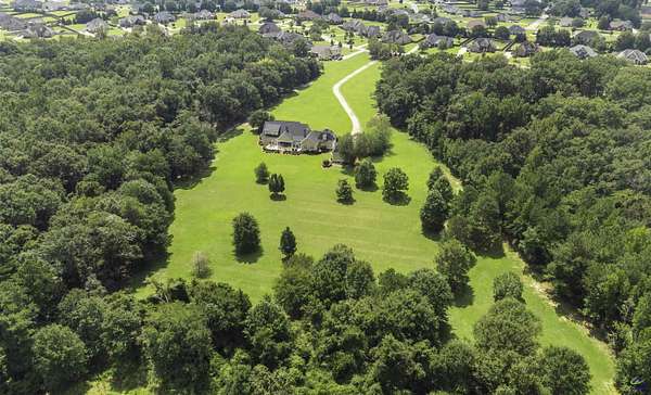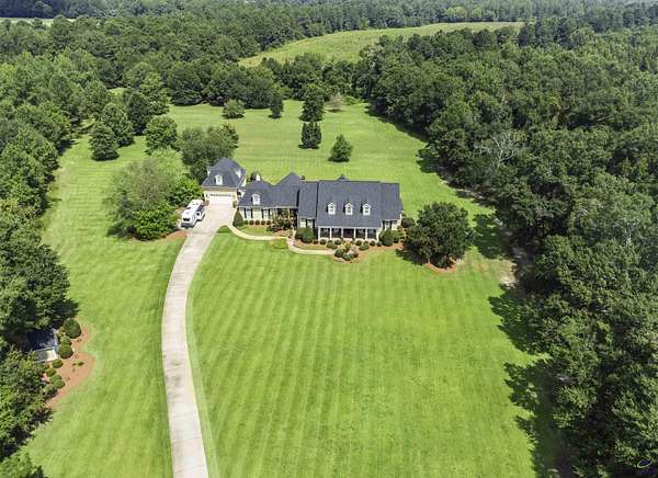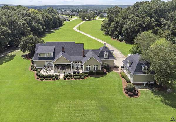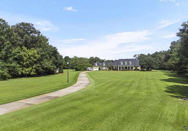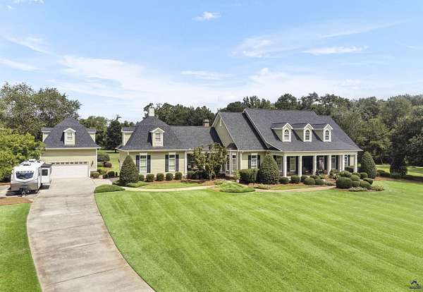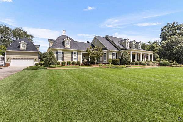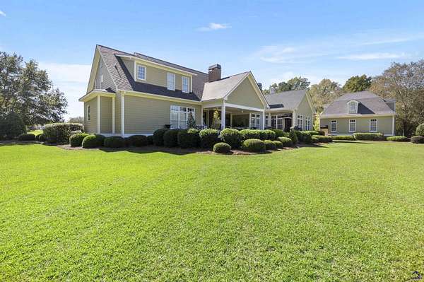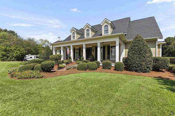 No covenants for this out parcel!! Privacy when you want it. Community, when you choose it. And every day... the kind of beauty you thought only existed in magazines. The moment you turn onto the winding drive, the rest of the world fades away. Here, on 14.45 acres of manicured beauty, life moves at your pace. Your home is wrapped in the privacy of 13.66 unrestricted acres, yet you still enjoy the privileges of Riverbend if you choose. .79 acres within the subdivision grants you access to the pool, playground, and clubhouse whenever the mood strikes. Step inside and let the warmth of heart pine floors and streaming natural light set the tone. Mornings unfold in the main-level owner's suite, where a spacious ensuite offers generous closets and a walk-in shower already pre-plumbed for a steam shower upgrade. A second bedroom with its own private bath completes the downstairs, perfect for welcoming guests in comfort and style. Upstairs, the main wing features two bedrooms sharing a full bath, along with a third bedroom offering its own private bath and a large walk-in closet--an ideal retreat for guests or others who crave a bit more seclusion. Across the home, accessed separately, the bonus room becomes whatever your lifestyle demands: a state-of-the-art home theater, private office, creative studio or additional bedroom. The kitchen is a showcase of craftsmanship and functionality, anchored by an expansive granite bar ideal for casual dining and conversation. Custom cabinetry, a welcoming keeping room with a fireplace, and elegant glass transoms throughout elevate every moment spent here. The main living room, centered around a timeless fireplace, invites lingering evenings, while the secondary living area--with its own eat-at bar--becomes the center of unforgettable gatherings. Outdoors, life flows seamlessly onto two gracious front porches and a sweeping covered back porch with its own fireplace, overlooking rolling green lawns that seem to stretch forever. The detached two-car garage offers more than storage, featuring a half bath and an upstairs space ready to be transformed into additional living quarters, a studio, or a private guest retreat. With new HVAC systems, new roof shingles, and a dedicated irrigation well, every detail of this property is designed for lasting comfort and effortless living. This is more than a home--it's an estate, offering privacy, elegance, and community in a rare and perfect balance.