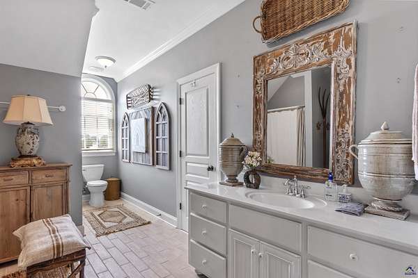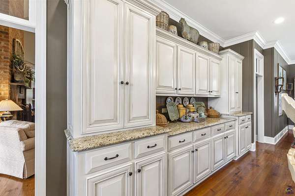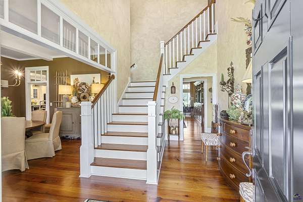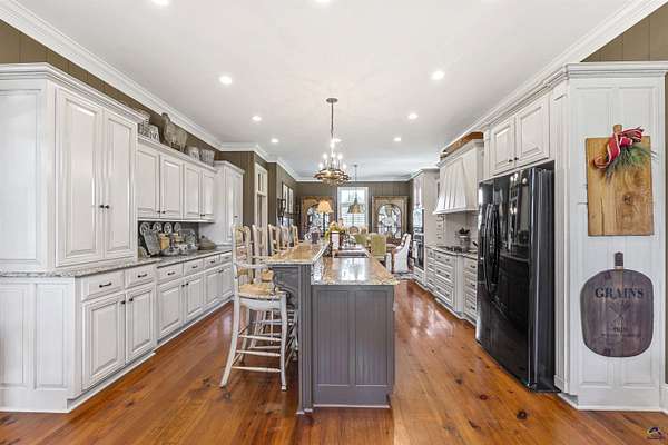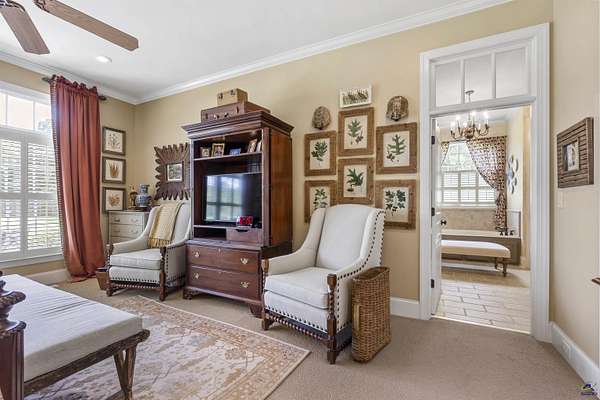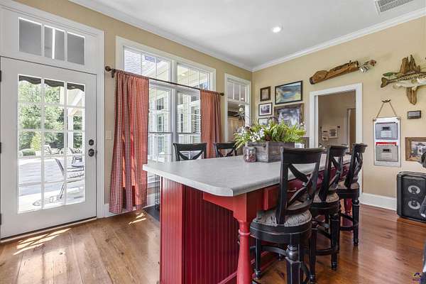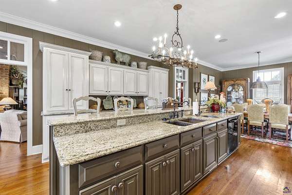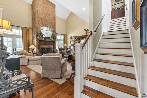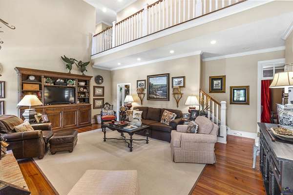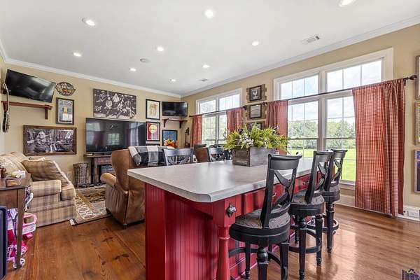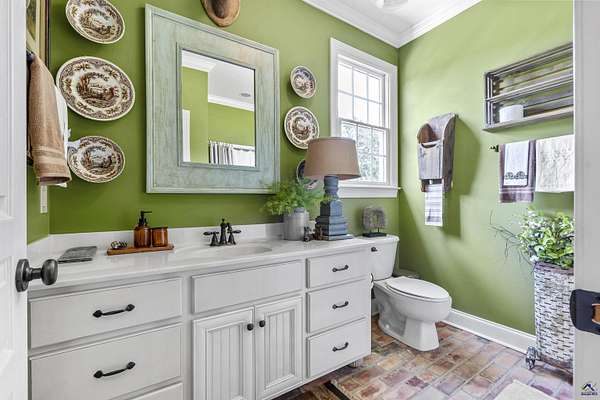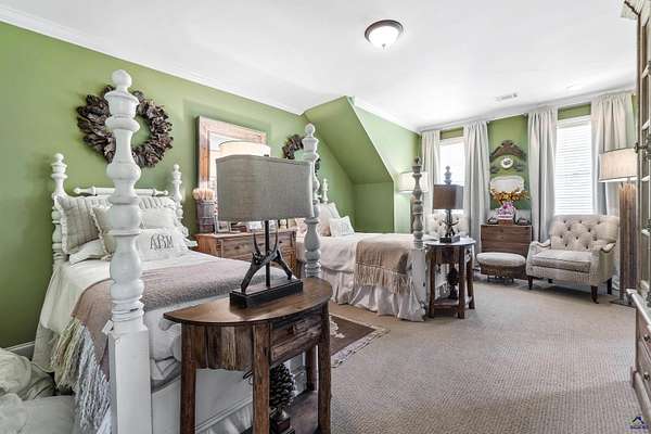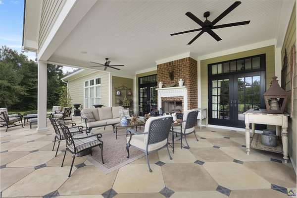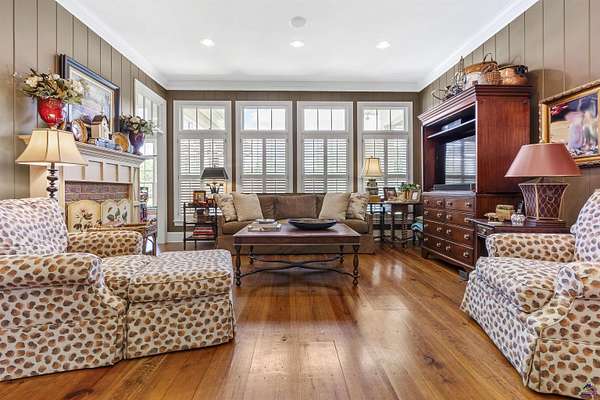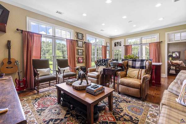 No covenants for this out parcel!! Privacy when you want it. Community, when you choose it. And every day... the kind of beauty you thought only existed in magazines. The moment you turn onto the winding drive, the rest of the world fades away. Here, on 14.45 acres of manicured beauty, life moves at your pace. Your home is wrapped in the privacy of 13.66 unrestricted acres, yet you still enjoy the privileges of Riverbend if you choose. .79 acres within the subdivision grants you access to the pool, playground, and clubhouse whenever the mood strikes. Step inside and let the warmth of heart pine floors and streaming natural light set the tone. Mornings unfold in the main-level owner's suite, where a spacious ensuite offers generous closets and a walk-in shower already pre-plumbed for a steam shower upgrade. A second bedroom with its own private bath completes the downstairs, perfect for welcoming guests in comfort and style. Upstairs, the main wing features two bedrooms sharing a full bath, along with a third bedroom offering its own private bath and a large walk-in closet--an ideal retreat for guests or others who crave a bit more seclusion. Across the home, accessed separately, the bonus room becomes whatever your lifestyle demands: a state-of-the-art home theater, private office, creative studio or additional bedroom. The kitchen is a showcase of craftsmanship and functionality, anchored by an expansive granite bar ideal for casual dining and conversation. Custom cabinetry, a welcoming keeping room with a fireplace, and elegant glass transoms throughout elevate every moment spent here. The main living room, centered around a timeless fireplace, invites lingering evenings, while the secondary living area--with its own eat-at bar--becomes the center of unforgettable gatherings. Outdoors, life flows seamlessly onto two gracious front porches and a sweeping covered back porch with its own fireplace, overlooking rolling green lawns that seem to stretch forever. The detached two-car garage offers more than storage, featuring a half bath and an upstairs space ready to be transformed into additional living quarters, a studio, or a private guest retreat. With new HVAC systems, new roof shingles, and a dedicated irrigation well, every detail of this property is designed for lasting comfort and effortless living. This is more than a home--it's an estate, offering privacy, elegance, and community in a rare and perfect balance.