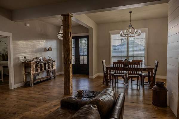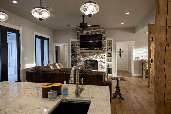 SUPER CLEAN CUSTOM !!! MODERN FARMHOUSE with RUSTIC FLARE !! AWESOME POOL and MASSIVE SHOP with FULL BLOWN APARTMENT INSIDE !! ENTIRE SHOP HAS HEAT AND AIR !! 40 x57 structure WITH 17 X 40 OVER HANG!! TONS of CONCRETE and COVERED PARKING. STURDY PRIVACY FENCE with a FRESH COAT !! DEEP PRIVATE WATER WELL and Sprinkler System. The HOUSE IS BEAUTIFUL from the COUNTRY ROAD. It's a FOUR THREE but, with the Full BATH Apartment and RV SET UP you can certainly accomodate lots of company !! The house is so clean and barely used. ONE OWNER !! The rooms are good size and all closets have built ins. THE KITCHEN IS LEGIT !! VIKING !! Great Windows, RUSTIC BEAMS, and cool fireplace take it over the top !! IT FEELS COMFORTABLE!! OVER SIZED Ventilated Garage with Coated Floor. NO HOA, but quality neighborhood.