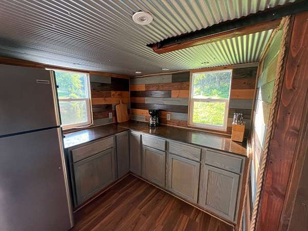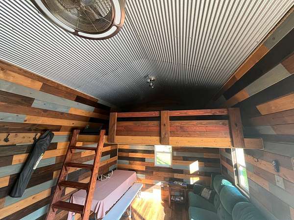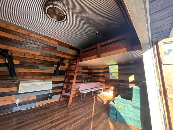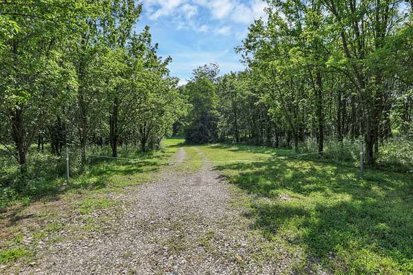 Enjoy the added features: a private shooting range, raised garden beds, dedicated garden space, and a handy storage shed. A small creek winds through the property, adding to its natural appeal. A gravel driveway leads directly to the cabin for easy access.