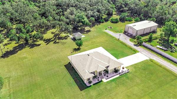 Dreaming of wide-open land and natural privacy, and a home that balances comfort with freedom -- this is it. This rare find boasts 2800 sqft of living space and is surrounded by lush palms, mature fruit trees, mature greenery, and the absolute best land Florida has to offer (with no HOA). This estate delivers a rare blend of tranquility and practicality, with over 13 acres of Non-Flood-Zone land, where you can enjoy a deep artesian well with high quality water that feeds a stocked fishpond. Whether you envision relaxing by the water, enjoying recreational fishing, or enhancing the private estate atmosphere, these natural elements create a rare and inviting environment. The estate has a NEW ROOF & HVAC, along with a Steel frame 3,200 sqft warehouse, built to last and perfect for equipment storage, workshop use, or future customization to fit your needs This beautiful home is set apart from others because of its location and low maintenance land with a long personal paved road that leads almost the whole distance of the property. Expertly designed to endure all of mother nature's tests feel at ease with well thought out homestead design, a true private family compound that captures the best of quiet country living while keeping you close to major amenities and coastal destinations with easy access to I-75. This solidly built home offers a well-designed open, split bedroom floor plan, providing comfort and privacy for all. Throughout the home, you'll find ceramic tile flooring, elegant crown molding, and high ceilings that enhance the bright, spacious feel. This exceptional property is truly a must-see, offering quality features and thoughtful design that set it apart from the rest. Schedule your showing TODAY!