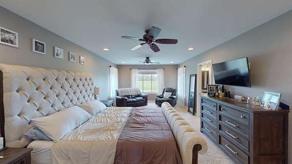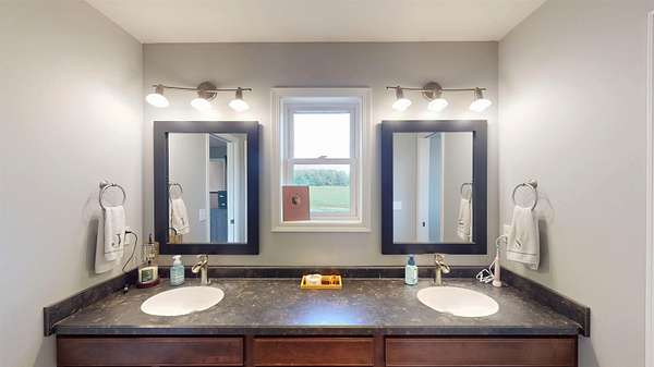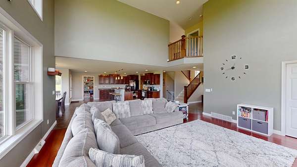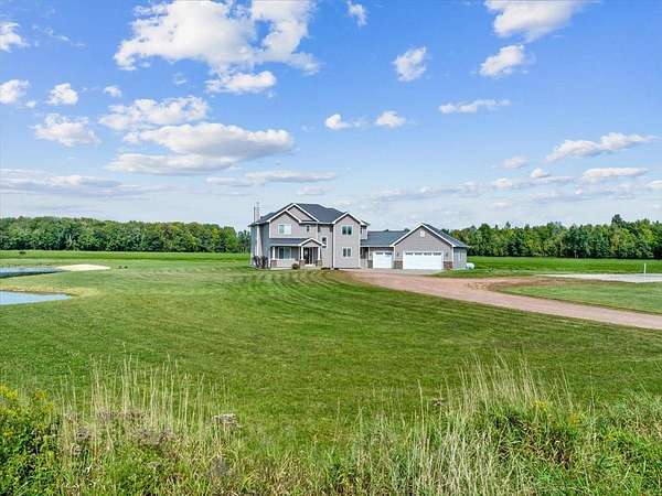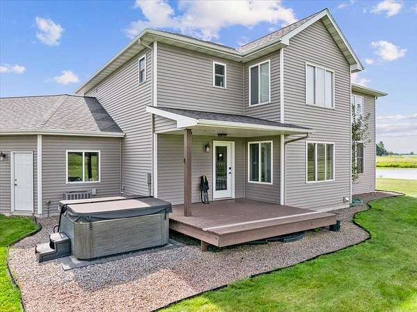 Spacious Country Living on Nearly 40 Acres with Private Pond & Modern Comforts. Welcome to your dream retreat! Situated on 39.70 acres on a dead end road, this stunning 6-bedroom, 4-bathroom, 2012 build with over 4,000 Sq. Ft. offers privacy, space, and peacefulness both inside and out. The exterior is a nature lover's paradise--featuring a private 18-foot deep, stocked pond with a beach, perfect for swimming, fishing, and relaxing. Enjoy the stunning views from the wooden deck or soak in the hot tub while enjoying the sunsets after a long day. Surrounded by farm field and wooded acreage, your back yard is a hotspot for wildlife of all kinds! Outside you'll also find a 40X56 slab ready for an additional outbuilding as needed, along with a 3 car attached garage that is heated and insulated. As you head inside, a light and airy atmosphere awaits. The main living area impresses with vaulted ceilings, floor-to-ceiling windows offering panoramic views, plus a wood-burning fireplace perfect for cozying up to those cool fall evenings.