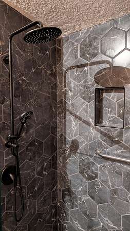 - Breakfast Bar, Ceiling Fan(s), Double Vanity, Enclosed Toilet(s), Fiberglass Stall Shower, Tile Shower