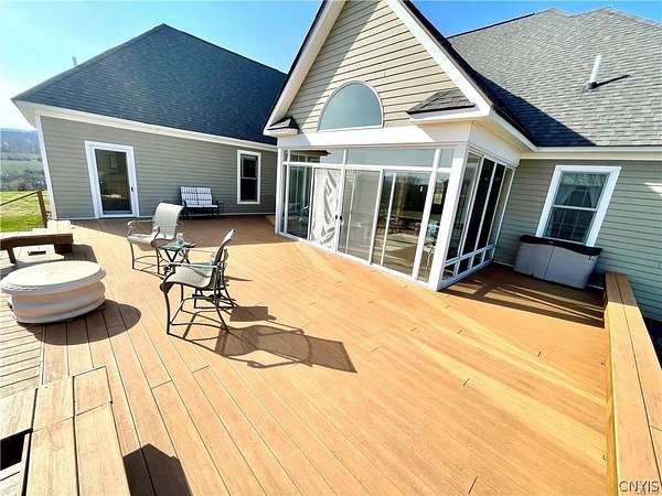 Welcome to this exceptional upscale rental located in Virgil, just minutes from Greek Peak Mountain Resort and conveniently situated between Cortland and Ithaca. Set on approximately 6 scenic acres, this property offers breathtaking 360-degree views in every direction-truly a rare and peaceful setting. This spacious home features 4 bedrooms and 2 full bathrooms, along with an open floor plan designed for comfortable living and entertaining. Enjoy additional living space in the bright three-season room or relax outdoors on the expansive deck overlooking the surrounding countryside. Property highlights include a large two-car attached garage, a barn for additional storage or flexible use, and a fenced yard area. Monthly rent is $2,950. Tenant is responsible for utilities (electric only). Pets will be considered for qualified applicants. No smoking permitted. Owner is seeking a responsible tenant for a one-year lease. Available July 1