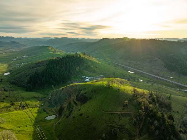 Located in the beautiful Umpqua River Valley, this inviting Southern Oregon Ranch with Lodge Home boasts remarkable privacy and views on its 160 acres of rolling pasture, and a stunning lodge home. The property offers approximately 10,000 square feet of shop space, multiple ponds, and a personal rock quarry.