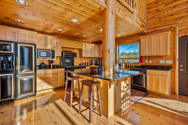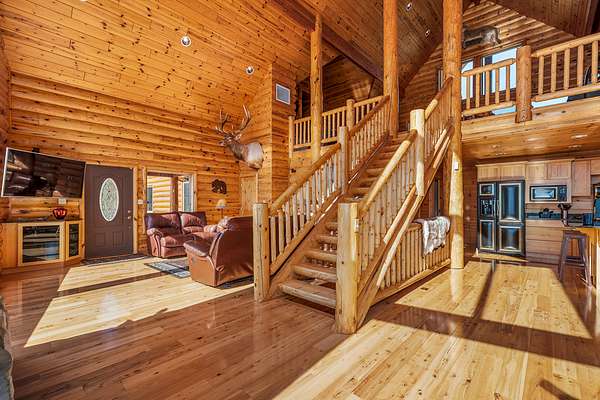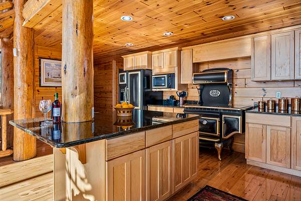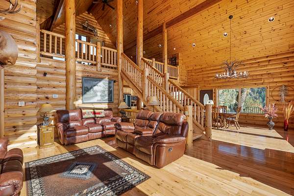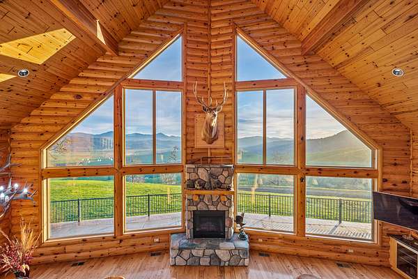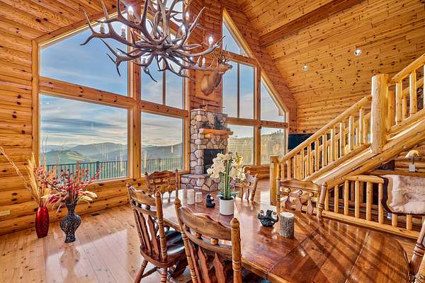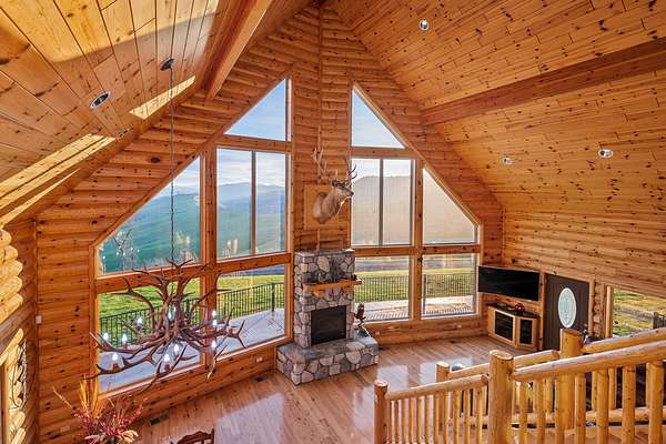 Custom built in 2003 this Energy Star Certified mountain chalet features quality craftsmanship, true log siding, an open & airy ambience and is a truly inspiring place to call home. Entering the house, you are greeted by a 30 foot vaulted ceiling cascading with knotty white pine tongue and groove and a south facing view that soaks in the depth and expanse of the valley below and distant mountains.
