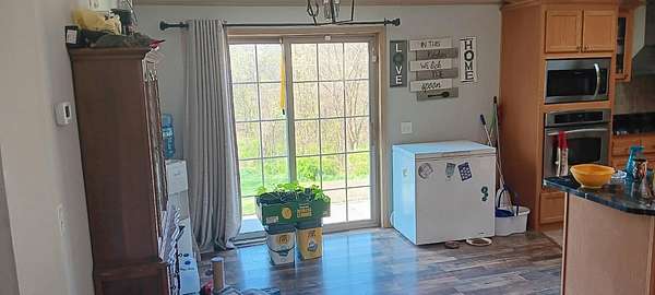 Est $1,275/moCharming 3-bedroom, 2-bath ranch situated on 2.77 acres, offering privacy and scenic wooded views. This well-maintained home features an updated kitchen with granite countertops, complemented by durable laminate plank flooring. The spacious dining room includes a sliding glass door that opens to a patio perfect for relaxing or entertaining while overlooking the peaceful surroundings. The primary suite boasts a luxurious en-suite bath with a soaker tub, while both bathrooms are finished with granite countertops. Exterior updates include all-new siding and insulation for improved efficiency and curb appeal. A detached garage provides additional storage and workspace. Enjoy country living with modern updates in this move-in-ready home!