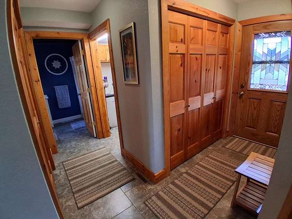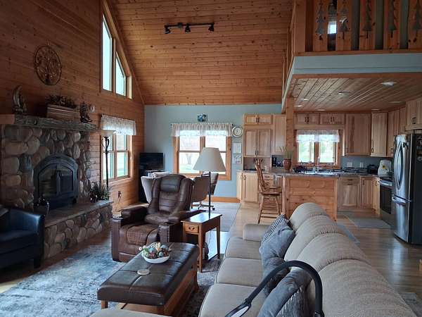 1019 19 3/4 St, Cameron, WI 54822 Riverfront Retreat on 2 acres/ Cameron, Wisconsin. Escape to peace, privacy, and nature in this beautifully built 1,500 sq. ft. riverfront home nestled on 2 scenic acres along the Red Cedar River in Cameron, Wisconsin. Whether you’re dreaming of a full-time home, weekend getaway or income-producing Airbnb, this property offers it all. MOVE – IN – READY! Open concept living, dining room and kitchen. The home features 2 spacious bedrooms plus a large office that could easily serve as a third bedroom, along with 2 full bathrooms close by. A spacious balcony overlooking the living room, creating an open, airy feel that’s perfect for relaxing or entertaining. You will love the vaulted knotty pine, tongue and groove ceiling. Hardwood & nice tiled floors, and well-built working stone fireplace, which adds warmth and character throughout the home. The modern kitchen includes beautiful hickory cabinets & brand-new appliances, flows beautifully into the living space, all filled with natural light from the many windows. Laundry room is conveniently located on the main floor. Step outside and enjoy the quiet, scenic setting, abundant wildlife with 200 ft. of river frontage on the Red Cedar River with a fire pit . It has a low bank, which makes it perfect for kayaking, fishing, unwinding, or simply soaking in the views and wildlife, beavers, otters, hawks, eagles, deer, etc. For the men, there is a garage for a vehicle and a large pole shed, 32 X 40 with 12 foot high walls, concrete floor and ample lighting, plus partial loft for storage, and a 12 ft. by 14 ft. workshop below with work benches and shelves. Plenty of room for a large RV or boats. This is a place to slow down, breathe deep and truly relax. Highlights: Riverfront property on the Red Cedar River. 2 acres of peaceful, private land. 1,500 sq. ft. with balcony overlooking living room. 2 bedrooms + large office (optional bedroom). 2 full bathrooms. Vaulted knotty pine tongue and groove ceilings and hardwood floors. Beautiful working stone fireplace. Modern kitchen with brand-new stainless appliances. Laundry room with new washer/dryer. Utility room with water heater & water softener. Garage and large shed. Tons of natural light. Ideal for home, Airbnb or cottage retreat.