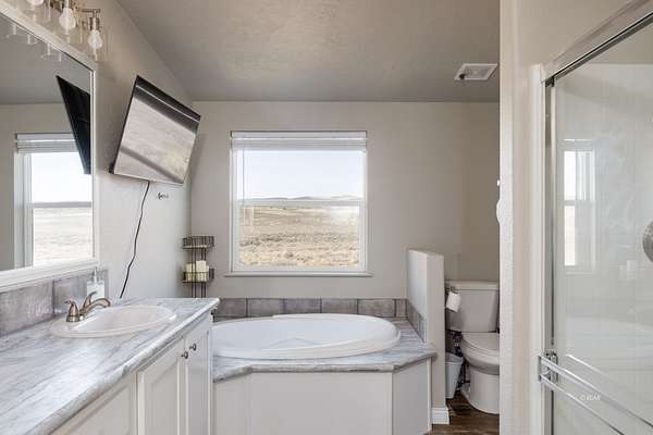 Welcome to your dream retreat! This like-new 4-bedroom, 3-bathroom home is nestled on a sprawling 40 plus acres at the end of the road, offering you the perfect blend of privacy and accessibility. Although it's almost off the grid, this property boasts all the conveniences you need. A natural spring runs through the property making it ideal for raising animals or cultivating your own crops! It's adjacent to BLM land and is just a short trek to Southfork Reservoir. This home features a solar well, ensuring you'll always have water. Property also has RV hook ups and sewer plus a Connex with lots of extra storage space. Located just 22 minutes from Elko, you can enjoy the best of both worlds-peaceful country living with the conveniences of city life nearby. Don't miss this unique opportunity to own a slice of paradise! This property has it all. Schedule a viewing today and start envisioning your new lifestyle! Directions: Take the Southfork exit, turn right on Hamilton Stage. Turn left on Meadow View. STAY on Meadow View till the end!! Google maps tells you to turn right again on Hamilton Stage, do NOT turn off of Meadow View
